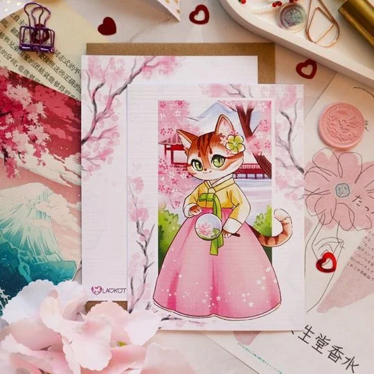 Открытка Лавкот «Кошечка в корейском наряде», А6