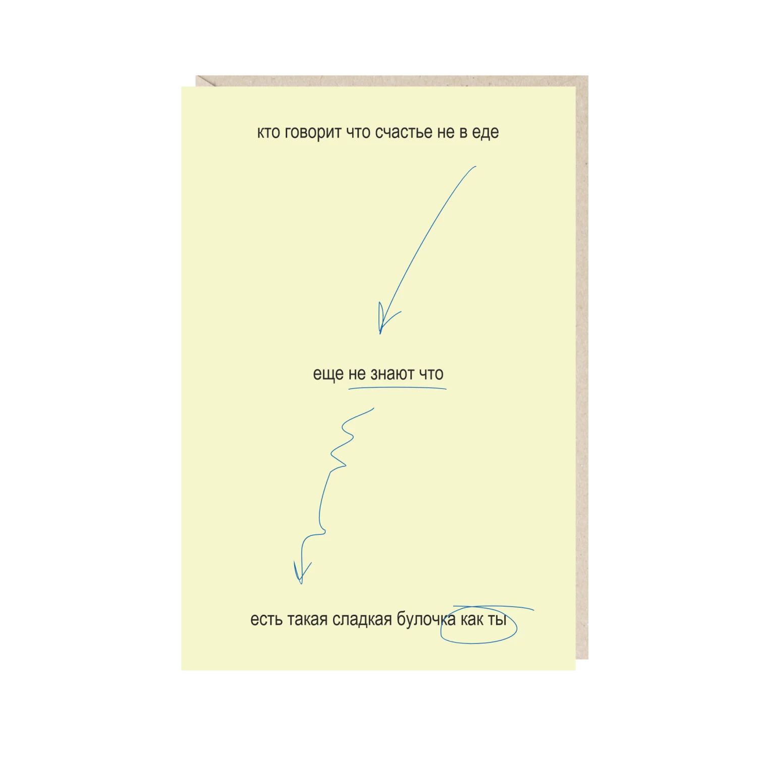 Открытка «Кто говорит, что счастье не в еде, еще не знают, что есть такая сладкая булочка как ты» от бренда Mitrozhe.