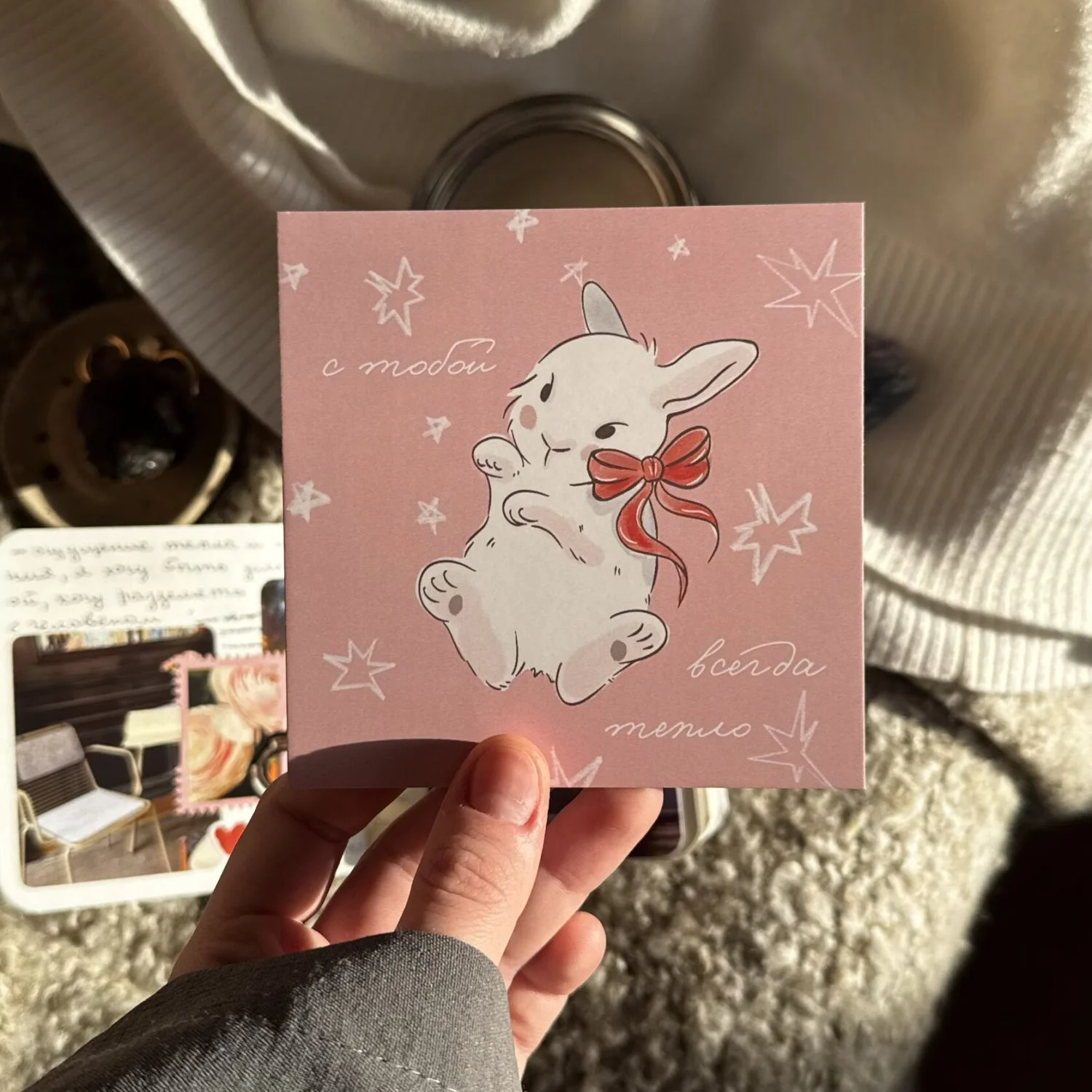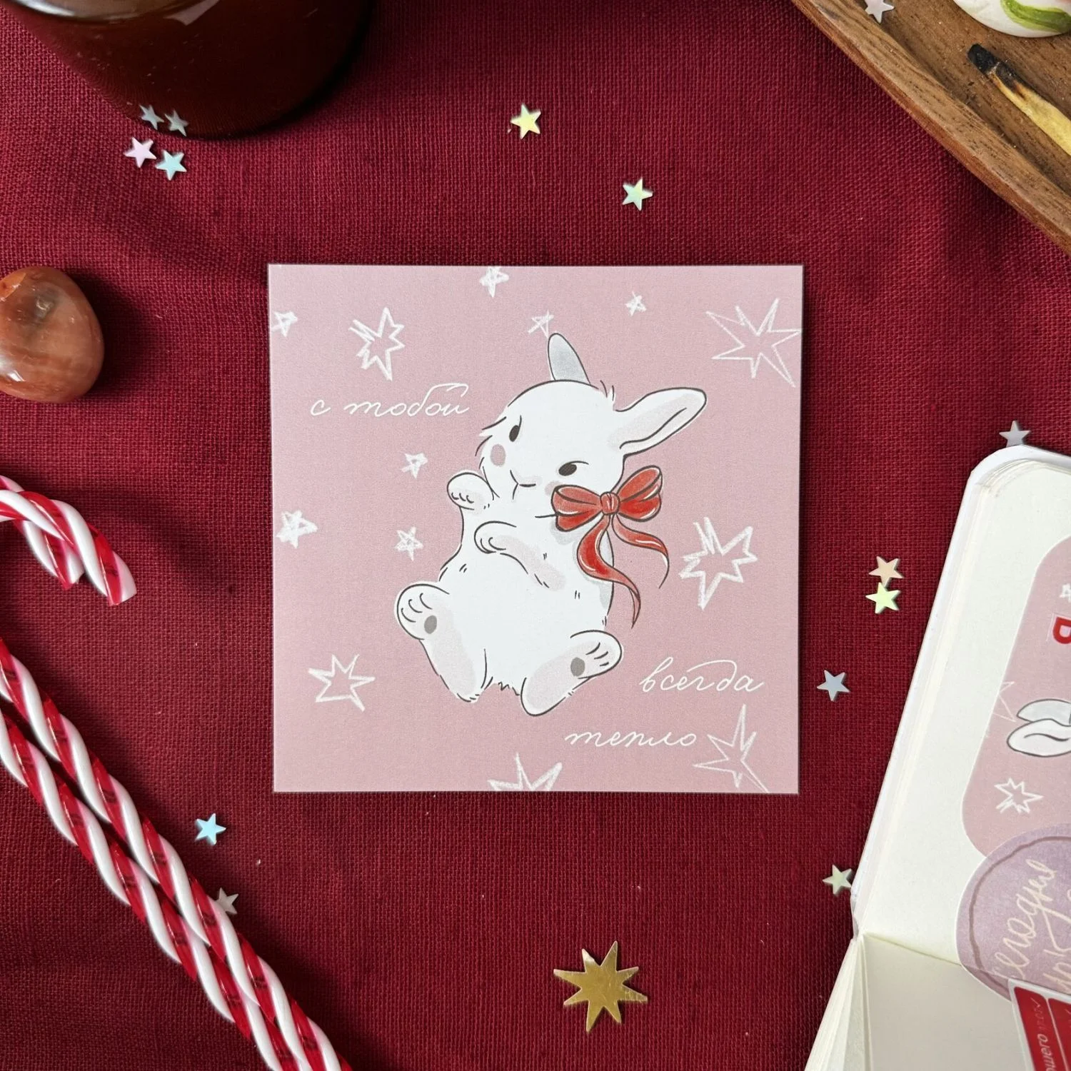 Открытка квадратная 10 х 10 см «С тобой всегда тепло» от бренда «В горчичном лесу».