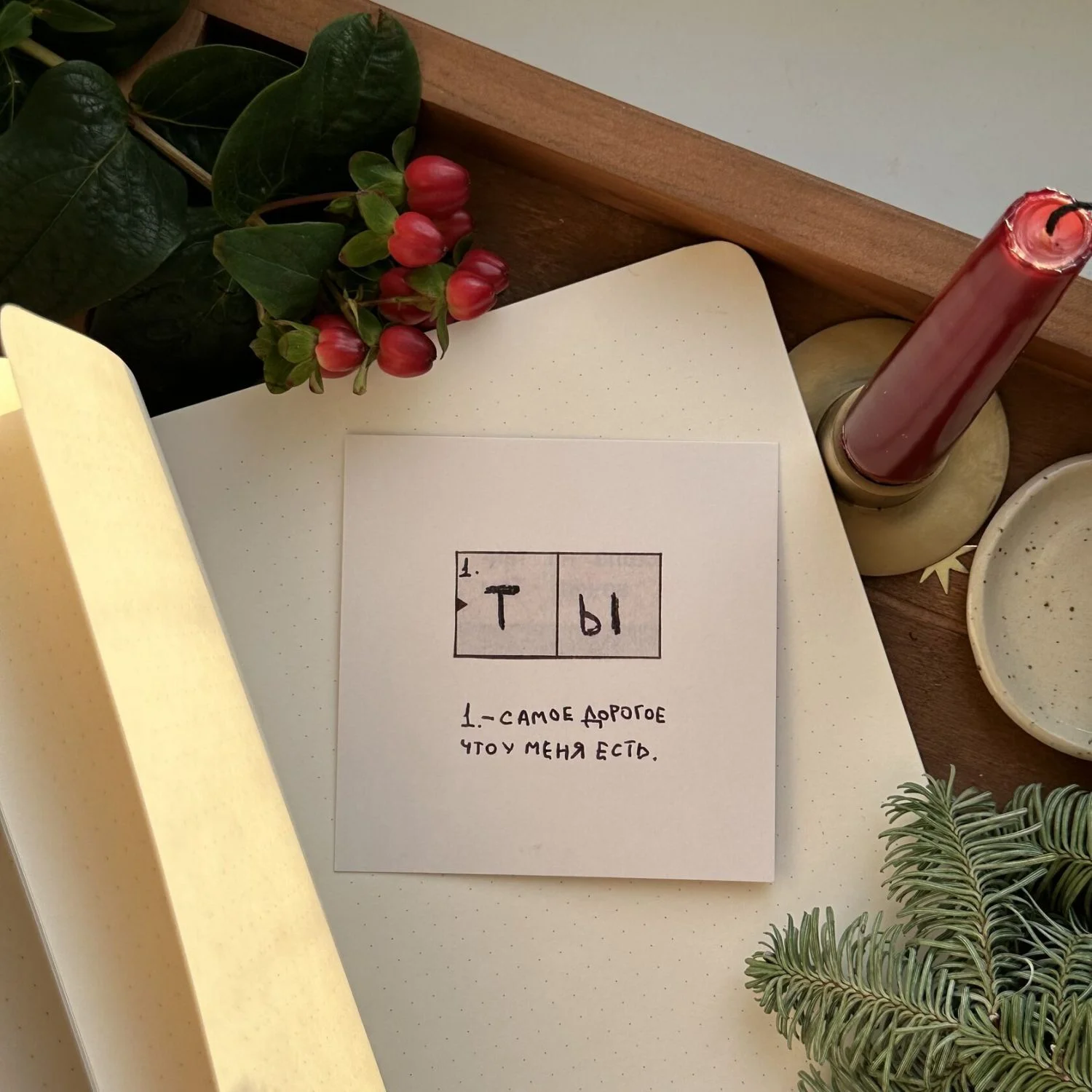 Открытка квадратная 10 х 10 см «Ты - самое дорогое» от бренда «В горчичном лесу».