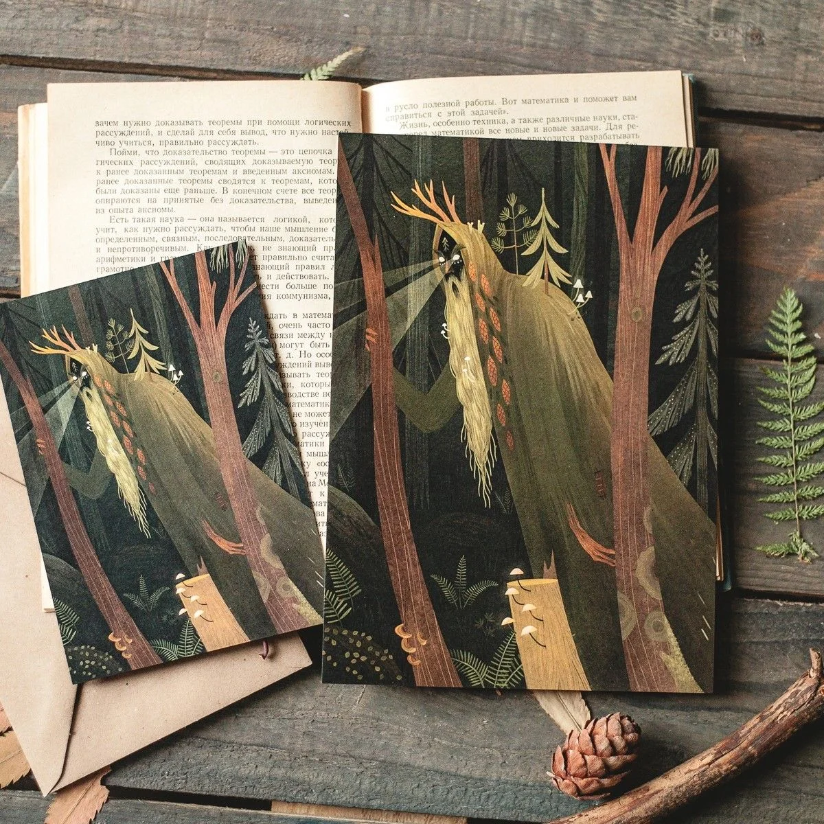 Авторская открытка «Леший», иллюстрация создана талантливой художницей из Санкт-Петербурга Дворниковой Александрой .