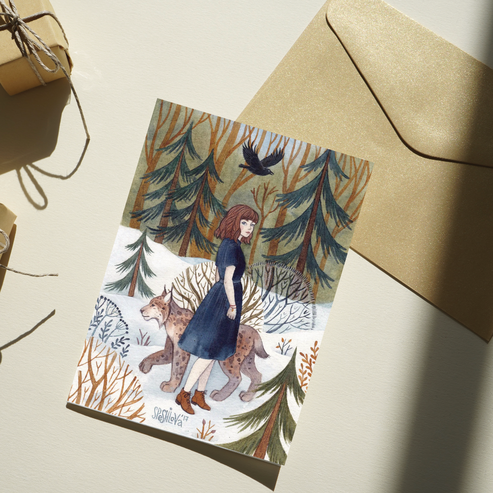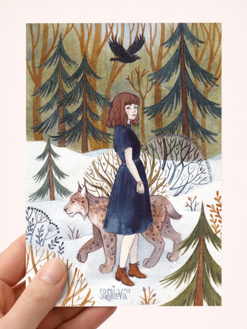 Авторская открытка стандартного почтового размера: 105*148 мм. Иллюстрация создана талантливой московской художницей Анной Спешиловой. На обратной стороне есть свободное место для подписи. Открытка упакована в индивидуальный крафтовый конверт. Печать выполнена на фактурном картоне плотностью 350 г/м. Открытка односторонняя, не открывается.