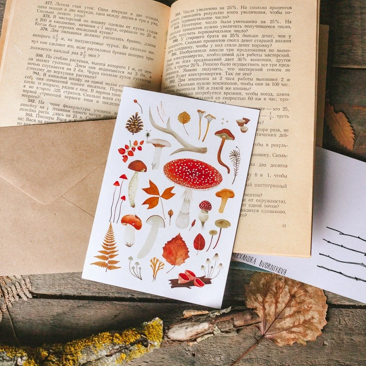 Авторская открытка «Лесные находки», иллюстрация создана талантливой художницей из Санкт-Петербурга Дворниковой Александрой .