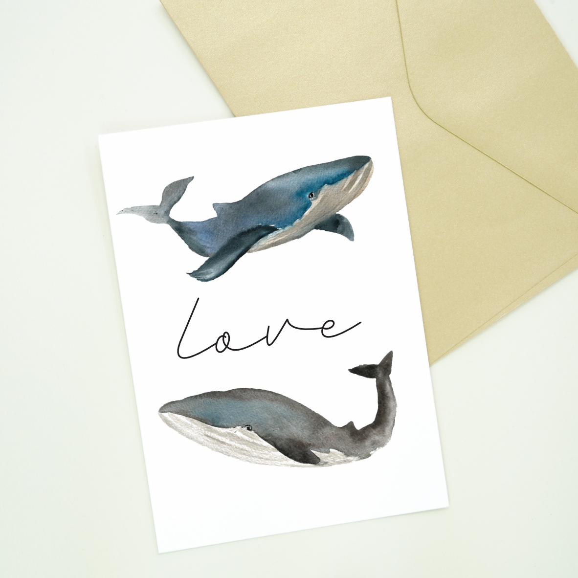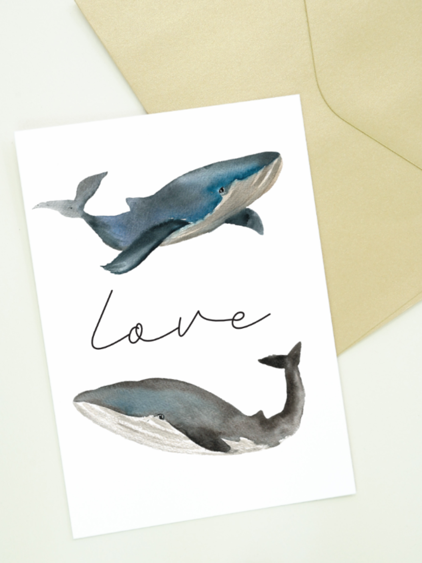 Авторская открытка почтового формата с акварельными китами и надписью "Love" расскажет о ваших чувствах и станет отличным дополнением к любому подарку! Открытка односторонняя, не открывается, упакована в индивидуальный крафтовый конверт. Печать выполнена на матовом картоне плотностью 300 г/м. Размер открытки: 10*15 см.