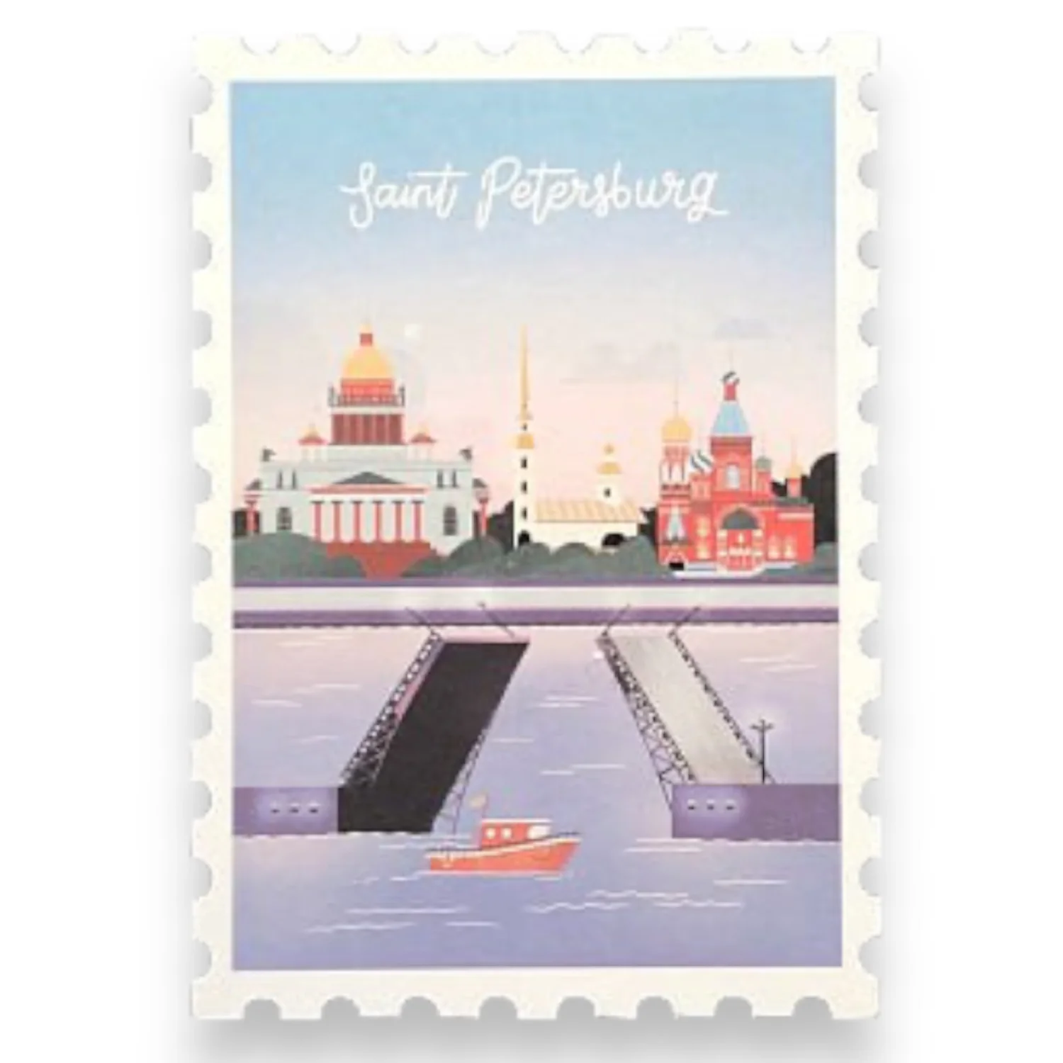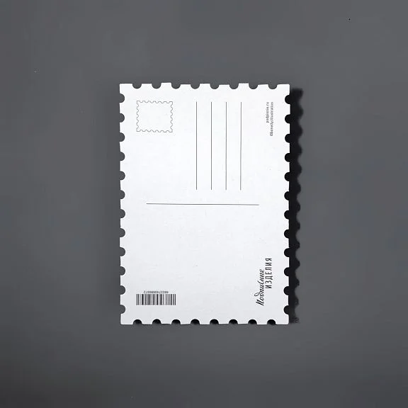 Открытка из плотного картона с краями, стилизованными под марку.