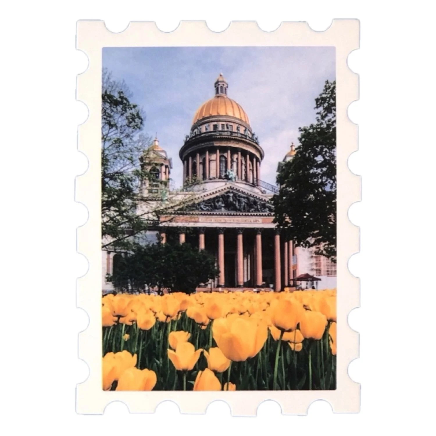 Открытка Подписные изделия «Мини-марка. Исаакиевский собор, тюльпаны», 93х67 мм
