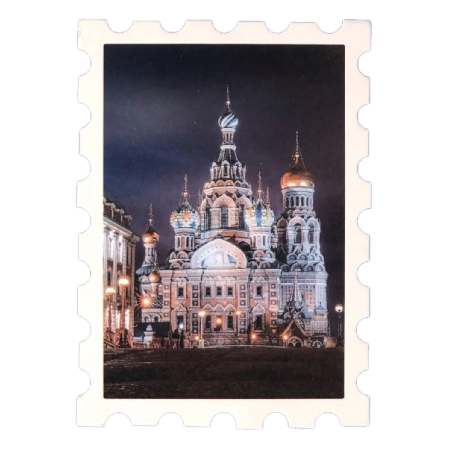 Открытка из плотного картона с краями, стилизованными под марку.