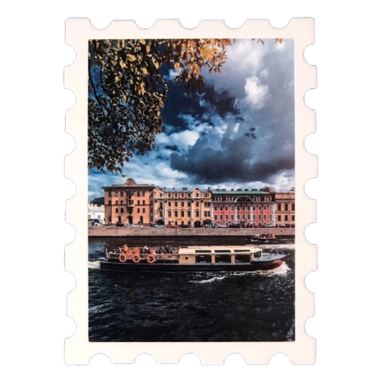 Открытка из плотного картона с краями, стилизованными под марку.