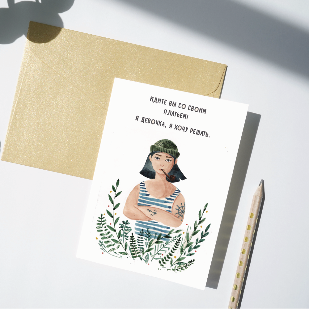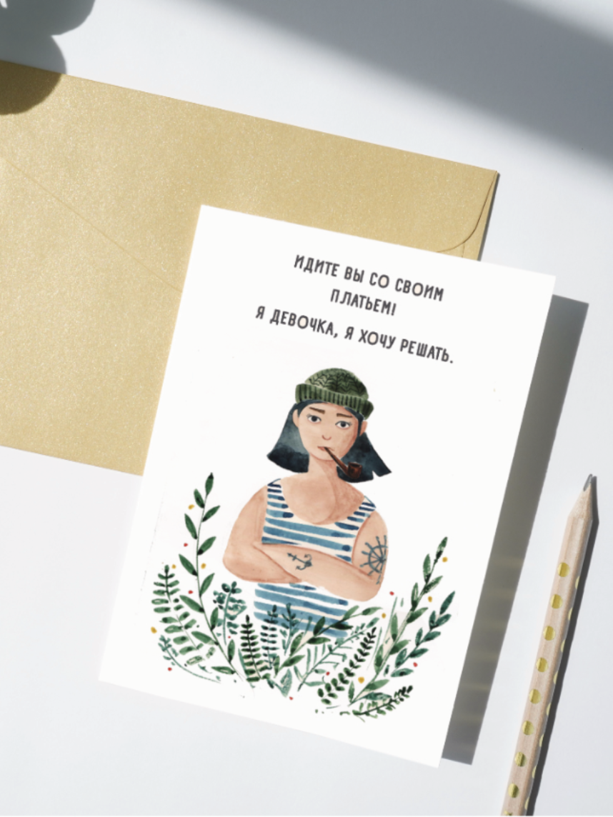 Авторская открытка размером 90*130 мм (немного меньше стандартной). Рисунок создан питерской художницей Марьей Иволгой. На обратной стороне есть свободное место для подписи - идеальное дополнение к подарку. Также для удобства открытка упакована в индивидуальный крафтовый конверт. Печать выполнена на картоне плотностью 300 г/м.