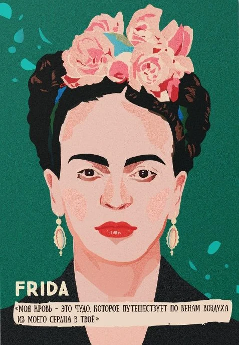 Открытка «Моя кровь - это чудо, которое путешествует по венам воздуха из моего сердца в твоё. Фрида Кало»