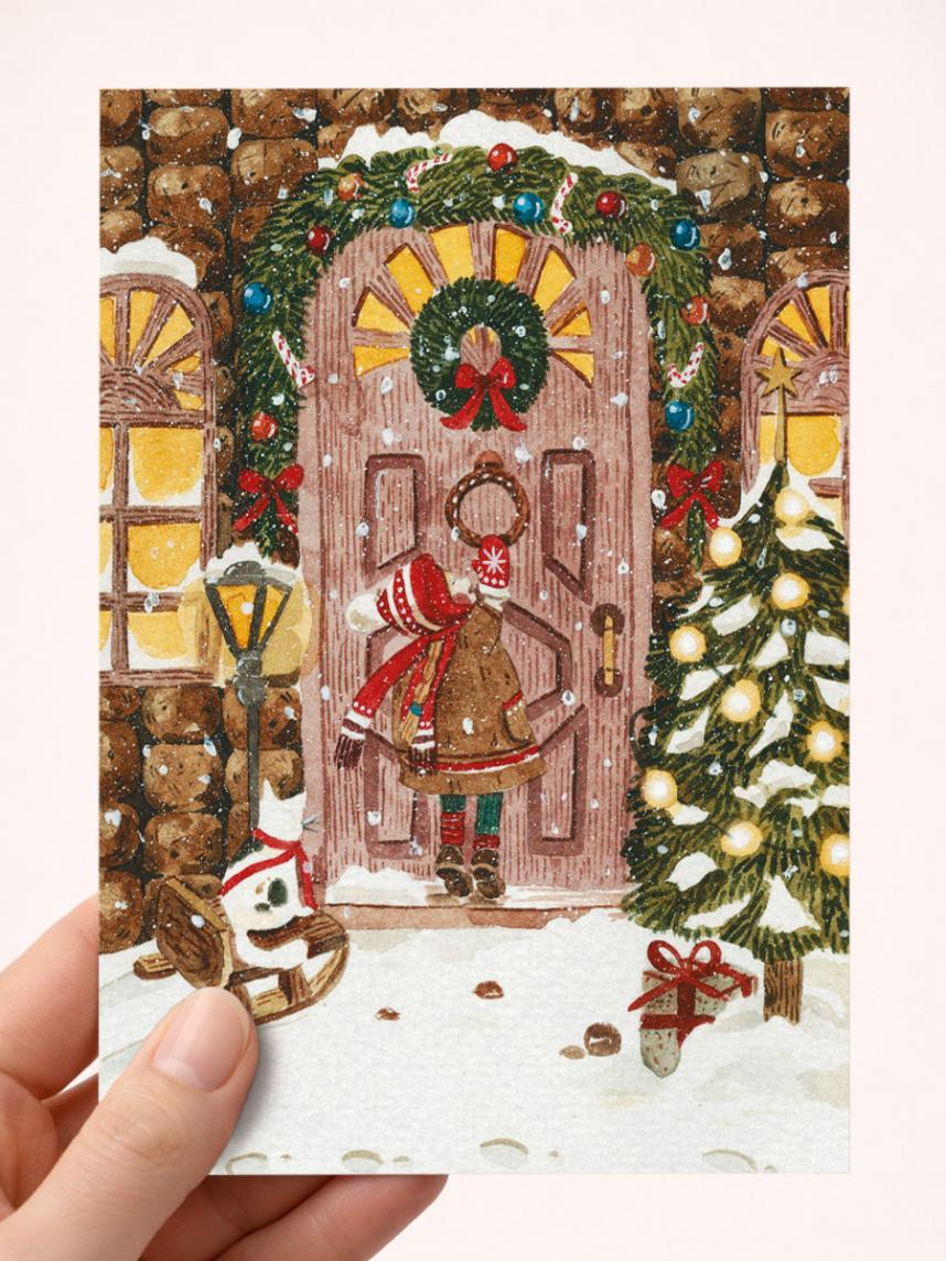Открытка на Новый год с милой акварельной иллюстрацией художницы из Санкт-Петербурга с ником Slovovslovo. Станет прекрасным дополнением к новогоднему подарку или самостоятельным сюрпризом!