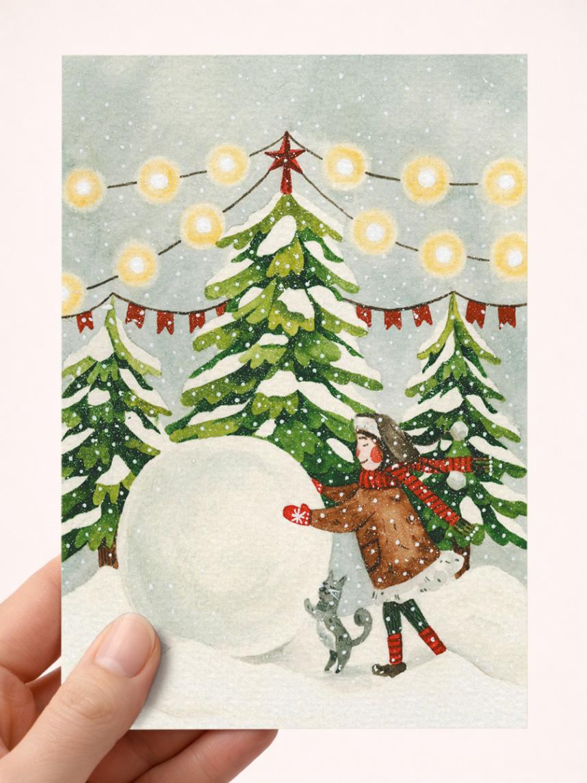 Открытка DARI DARI на Новый год «Катаем снеговика», А6