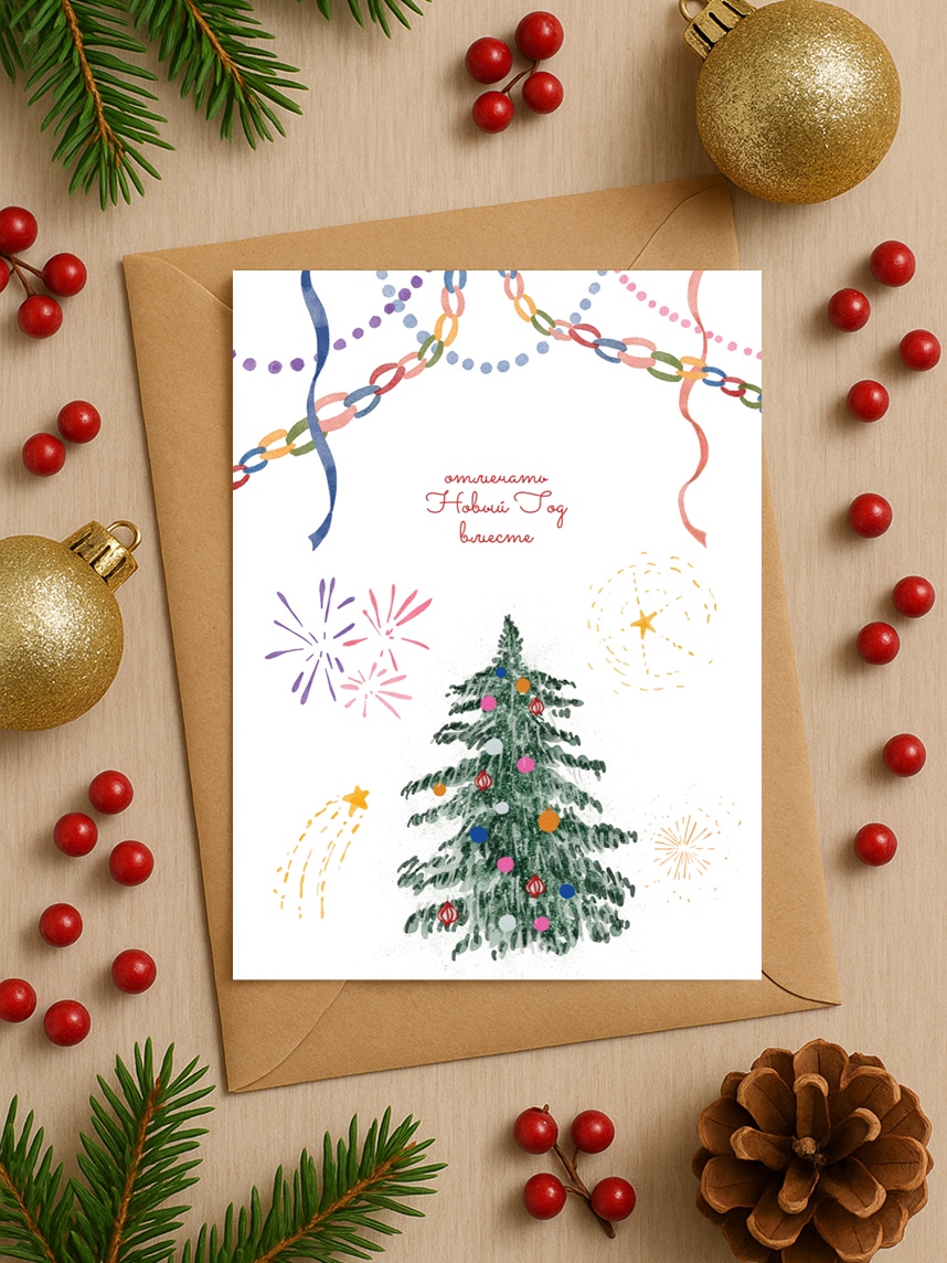 Открытка на Новый год «Отмечаем Новый год вместе», А6
