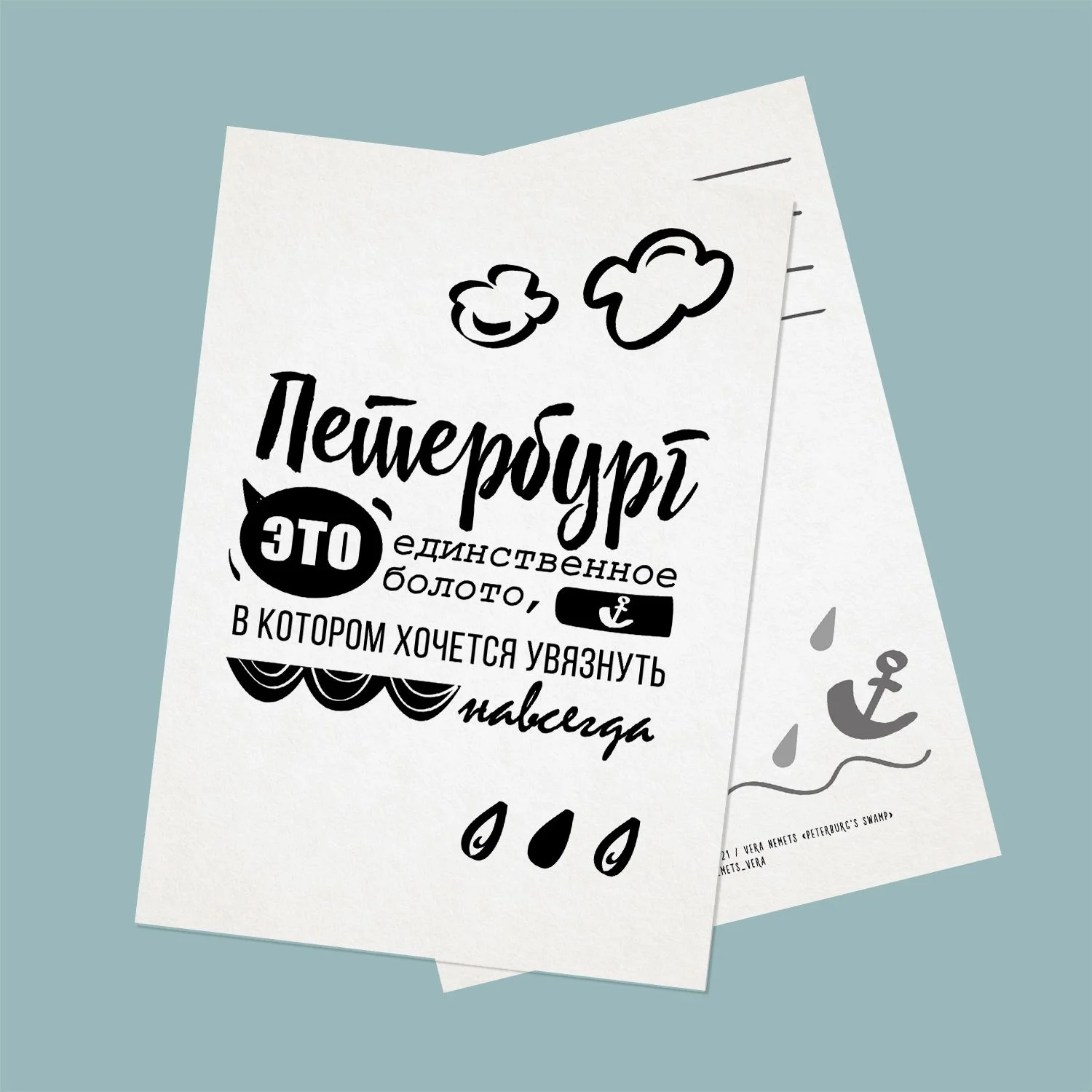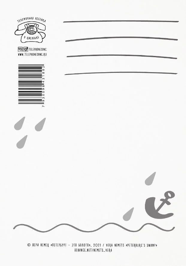 Минималистичная открытка с надписью: "Петербург - это единственное болото, в котором хочется увязнуть навсегда." Размер 10х15 см, печать на плотном картоне. Открытка бережно упаковывается в крафтовый конверт. Оборот открытки матовый: смело пишите ручкой и не бойтесь, что пожелание размажется. Есть разлинованное место для подписи и место для наклеивания марок.