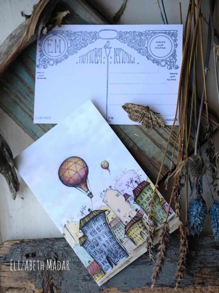 Авторская открытка с акварельным рисунком Питерской художницы Лиза Мадар размером 105*150 мм.