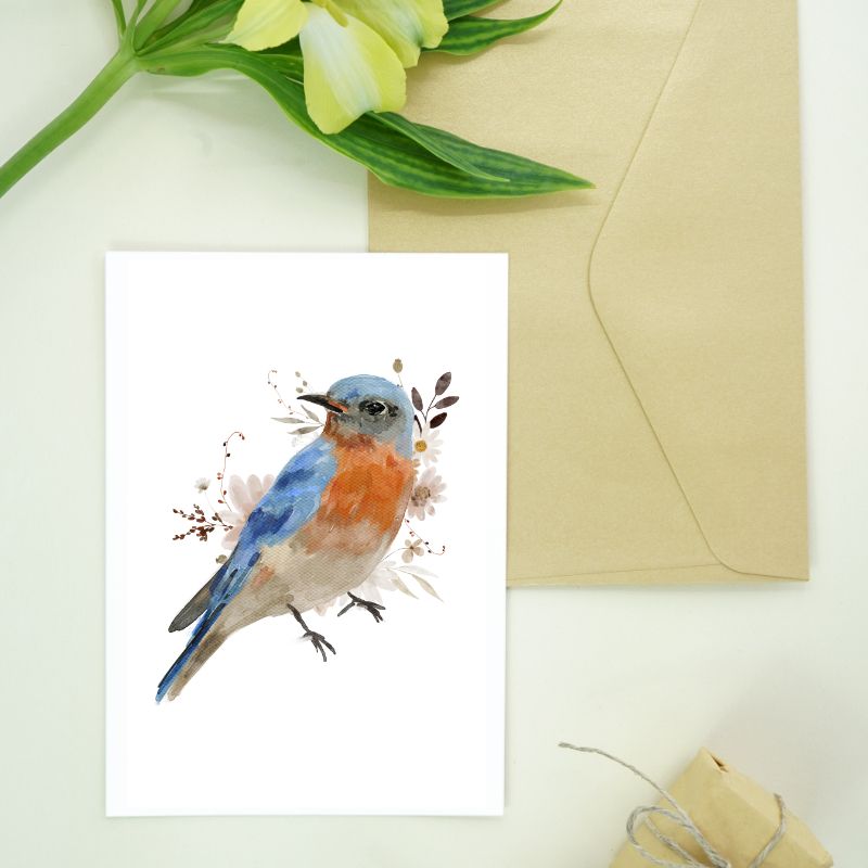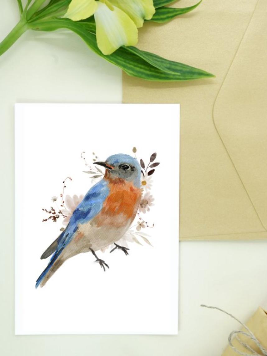 Авторская открытка уменьшенного формата. Иллюстрация с птичкой и свободное место для подписи на обратной стороне делают открытку идеальным дополнением к любому подарку.