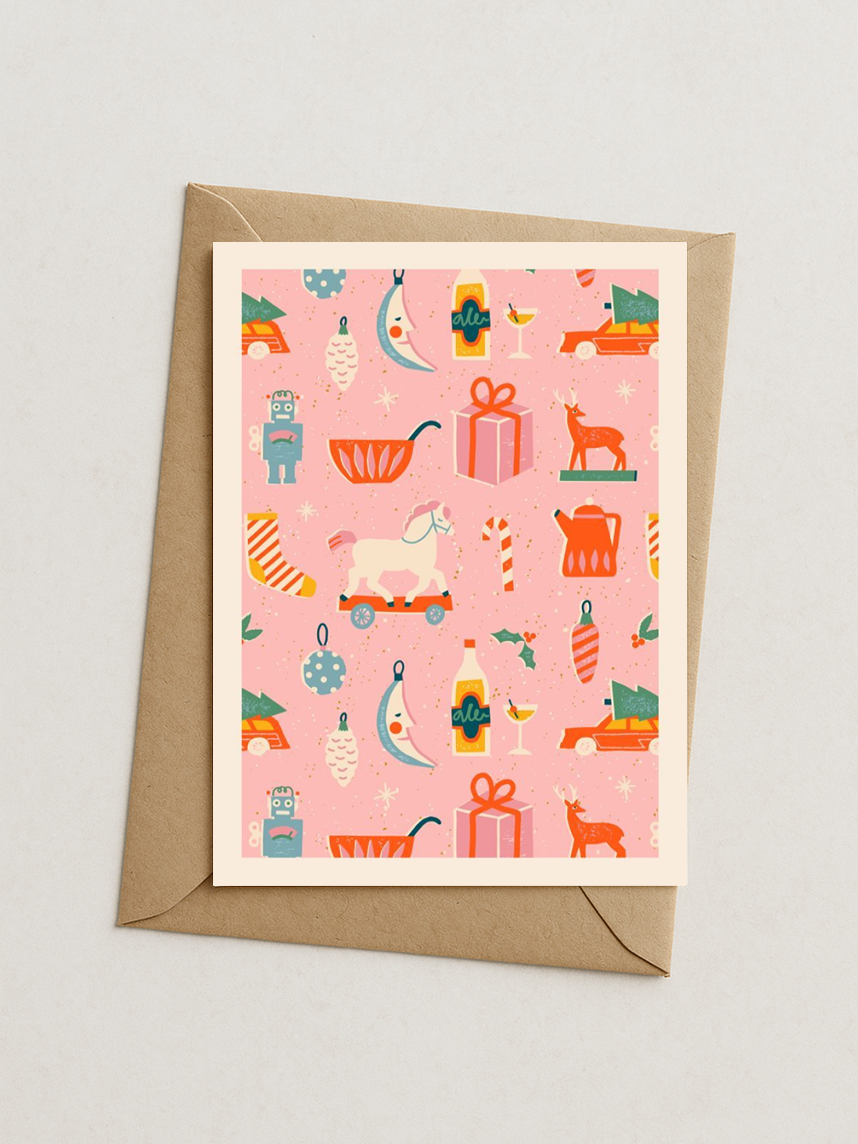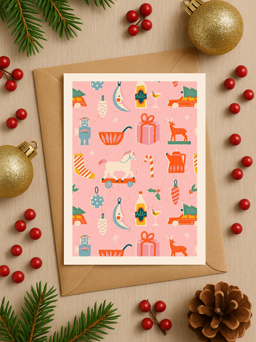 Открытка на Новый год со стильной ретро-иллюстрацией. Станет прекрасным дополнением к новогоднему подарку или самостоятельным сюрпризом!