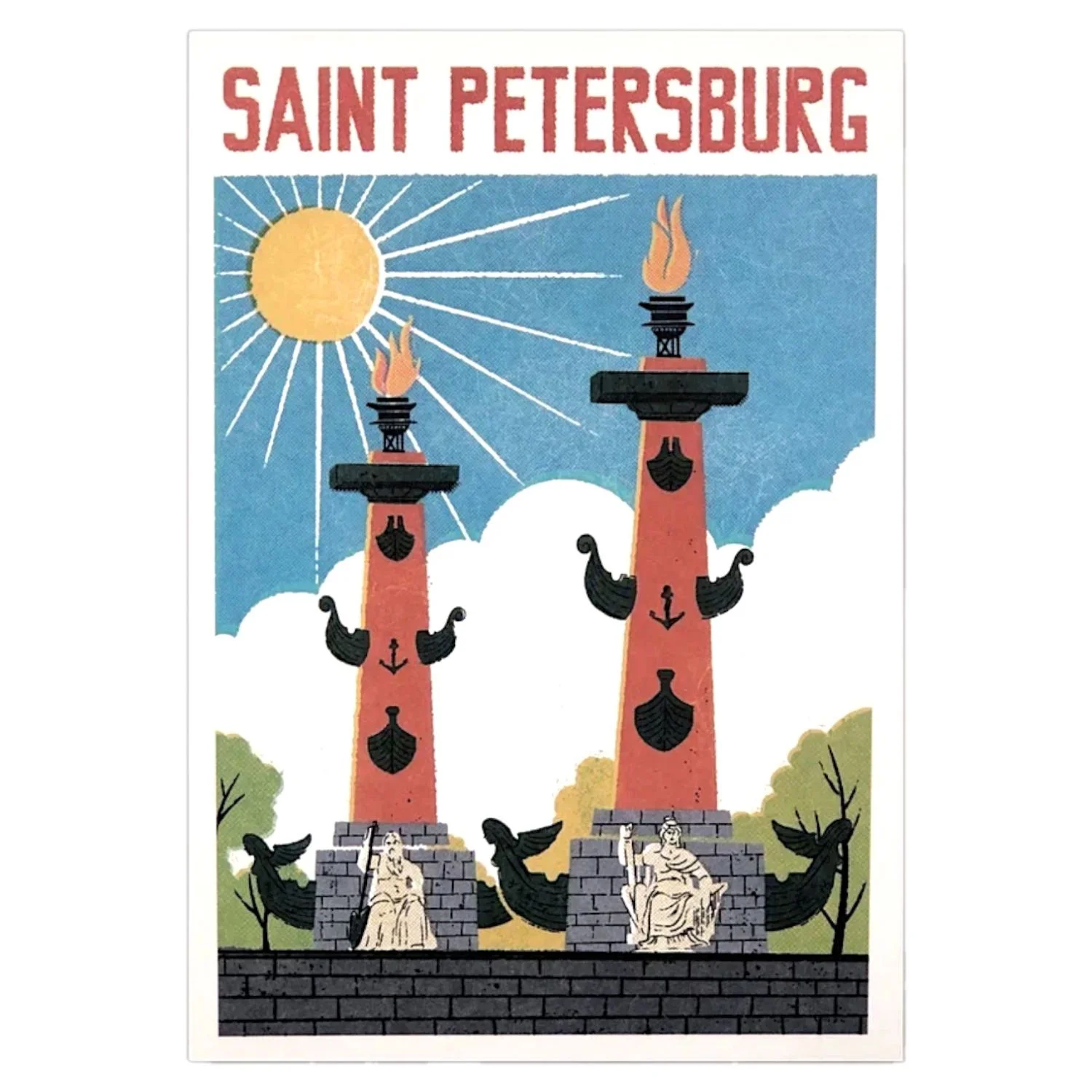 Открытка «Ретро. Ростральные колонны», напечатанная на качественном плотном картоне.