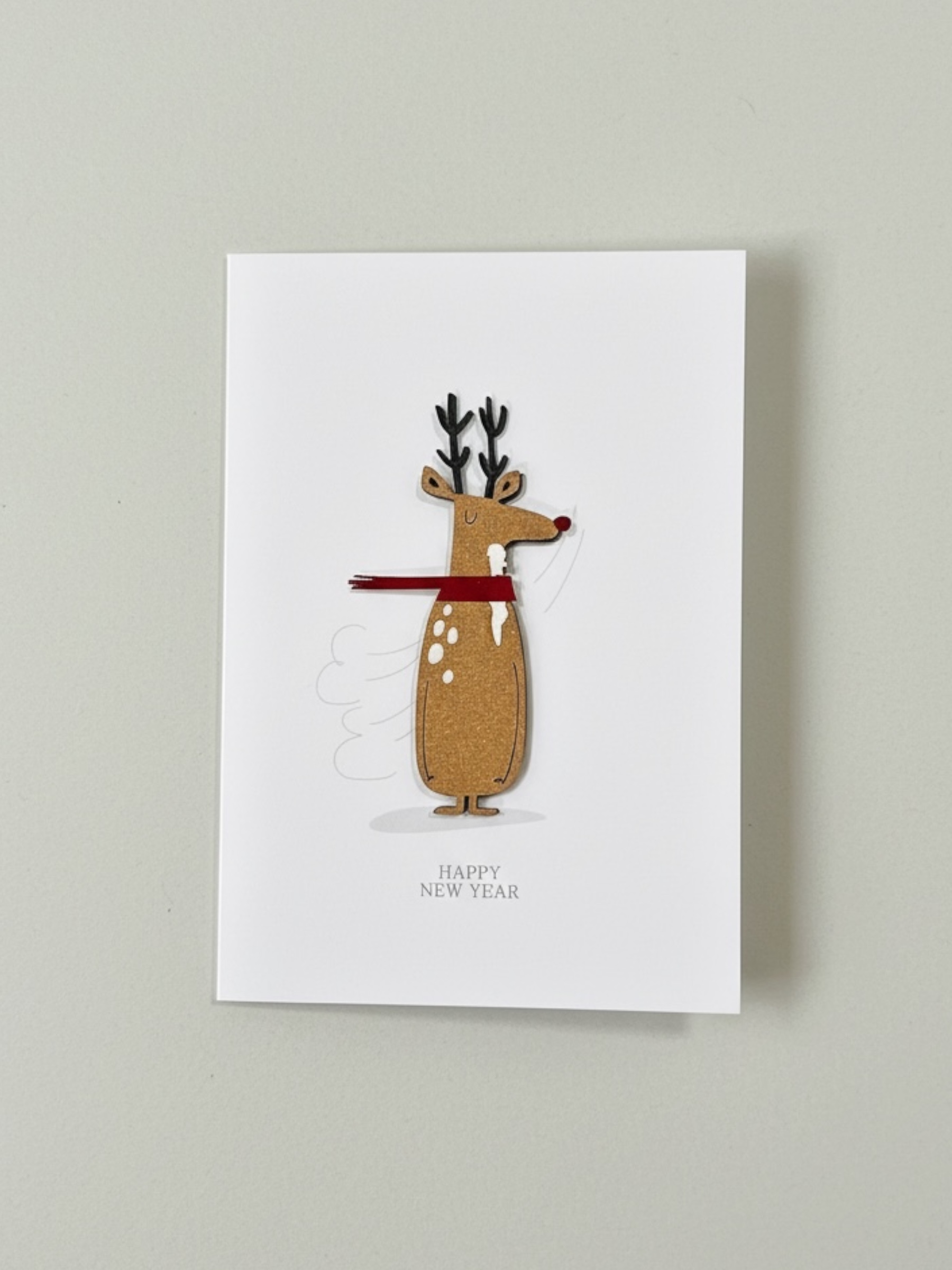 Открытка с деревянными элементами «Happy New Year c оленем», открывающаяся, BOE