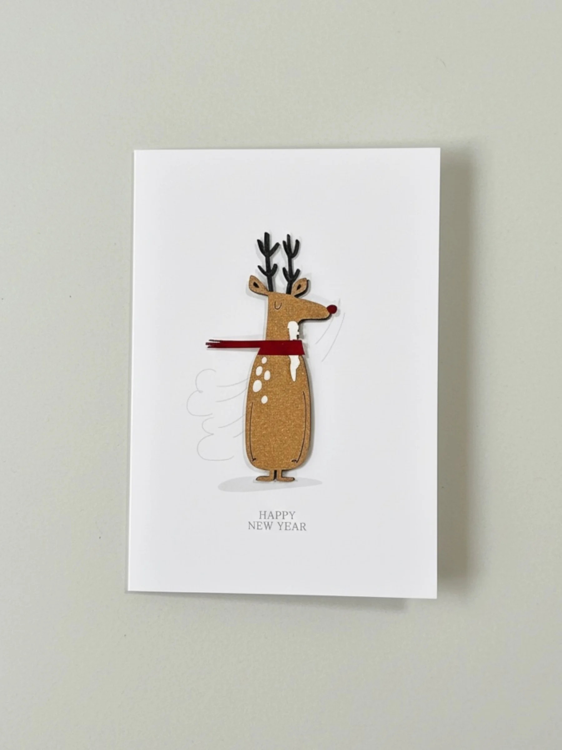 Открытка ВОЕ с деревянными элементами «Happy New Year c оленем», открывающаяся