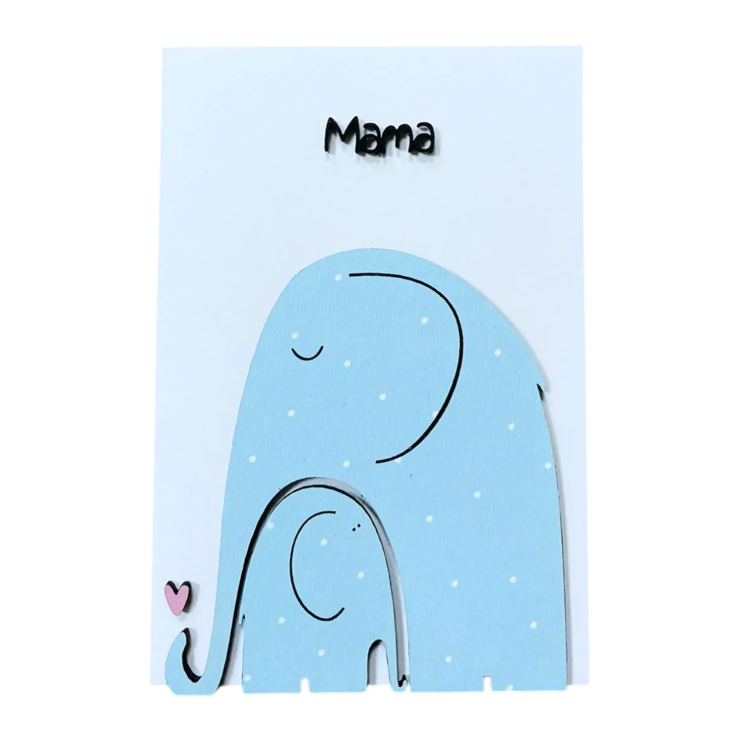 Оригинальная объёмная открытка с изображением мамы-слонихи и слонёнка станет чудесным дополнением к подарку маме. Фигурки животных сделаны из дерева.