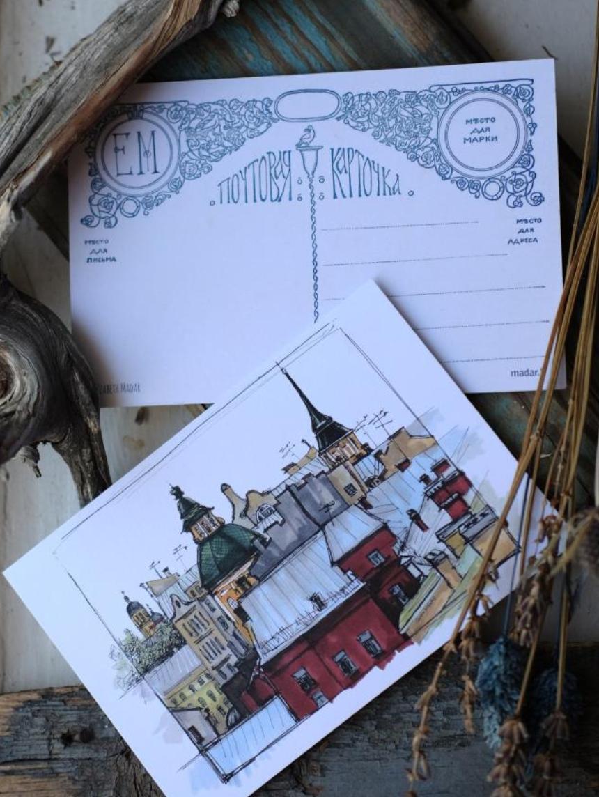 Авторская открытка с акварельным рисунком Питерской художницы Лиза Мадар размером 105*150 мм.