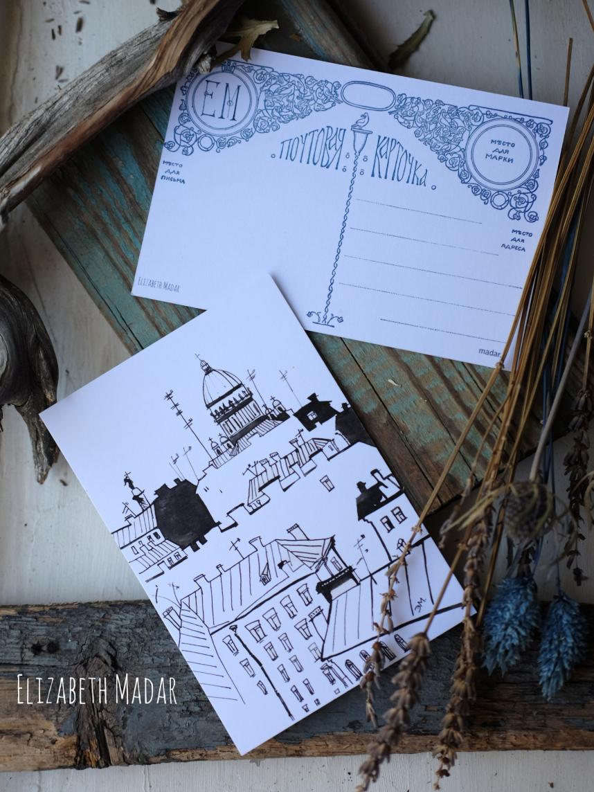 Авторская открытка с акварельным рисунком Питерской художницы Лиза Мадар размером 105*150 мм.