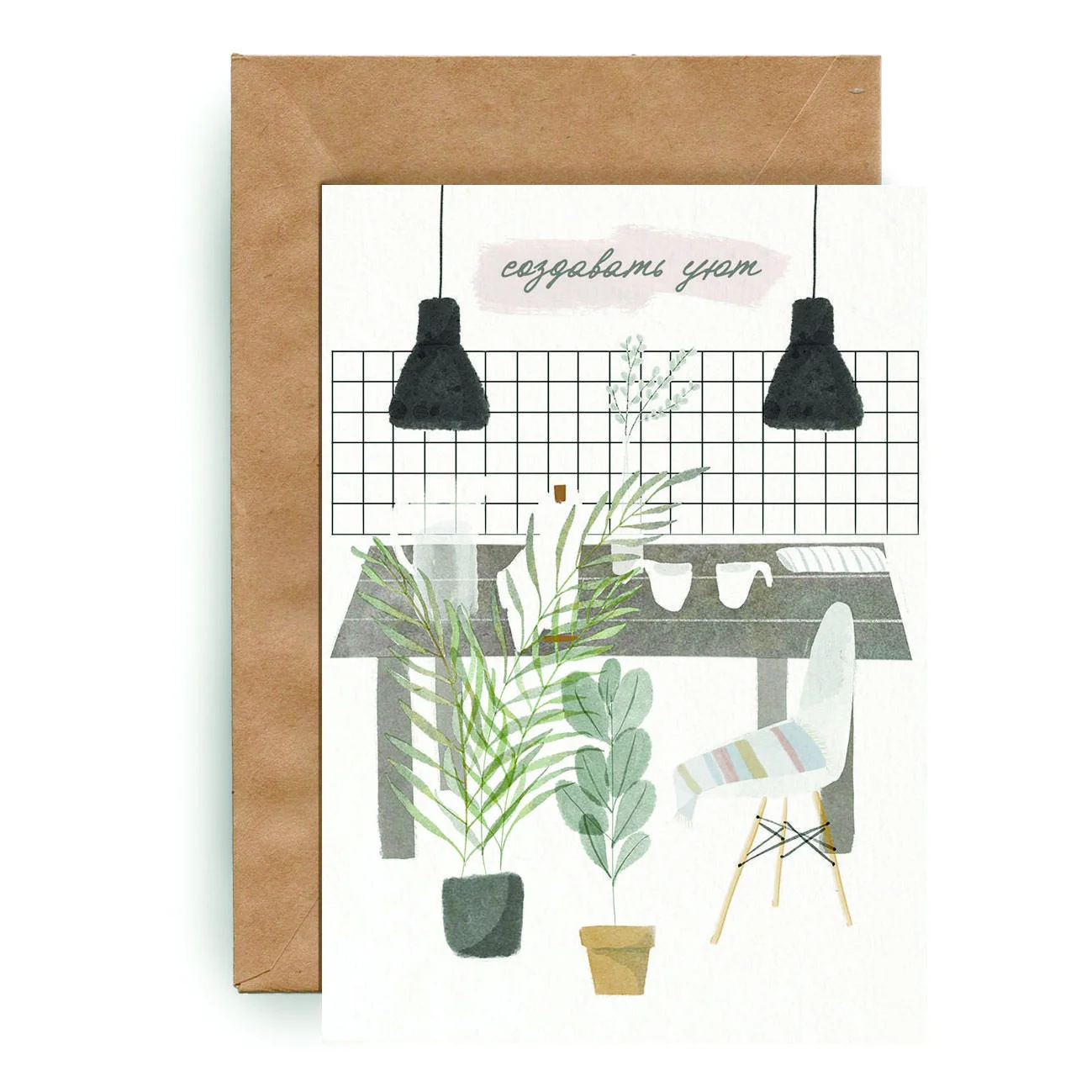 Открытка односторонняя, не открывается. Упакована в индивидуальный крафтовый конверт.