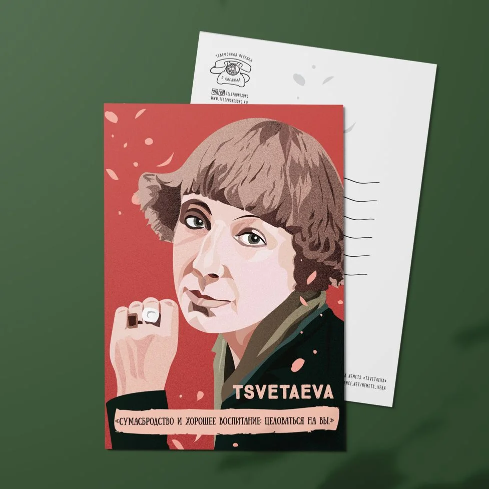 Открытка с цитатой поэтессы Марины Цветаевой: "Сумасбродство и хорошее воспитание: целоваться на Вы". Размер 10х15 см, печать на плотном картоне. Открытка бережно упаковывается в крафтовый конверт. Оборот открытки матовый: смело пишите ручкой и не бойтесь, что пожелание размажется. Есть разлинованное место для подписи и место для наклеивания марок.