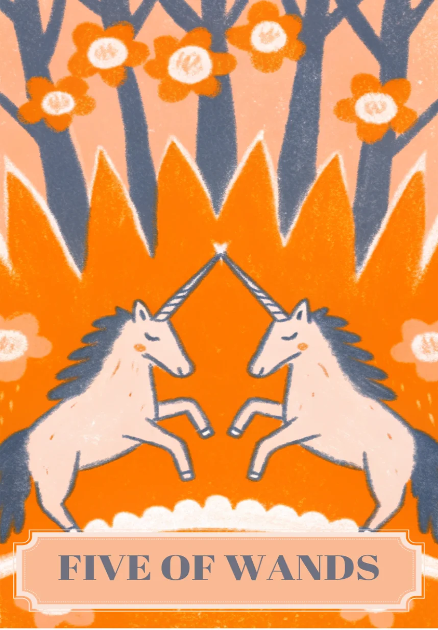 Открытка Таро Пятерка Жезлов (Five of Wands)