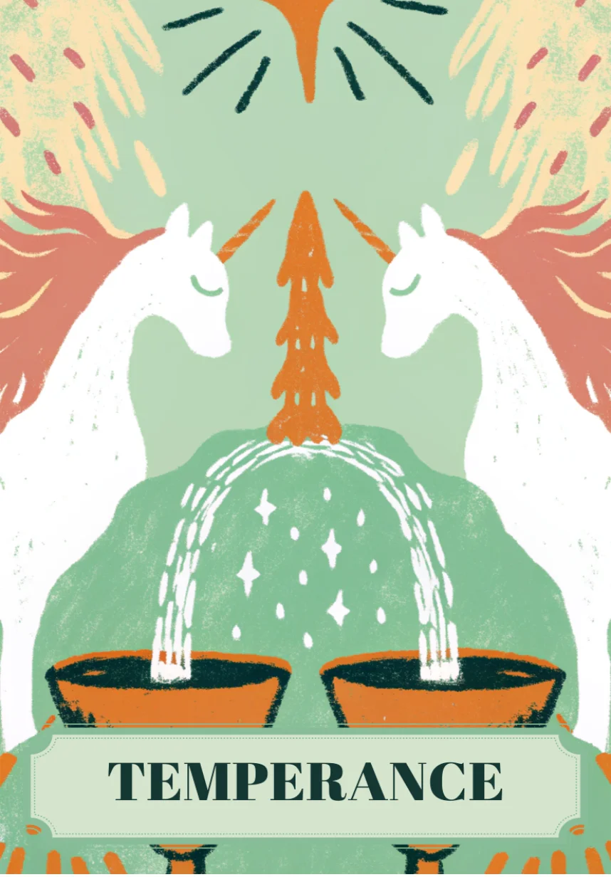 В перевернутом положении карта может указывать на дисбаланс, излишества или неумение контролировать свои желания. Это предупреждение о том, что чрезмерность или поспешность способны разрушить хрупкое равновесие. В целом, Умеренность учит нас ценить спокойствие, терпение и способность к гармоничному взаимодействию с миром и самим собой.