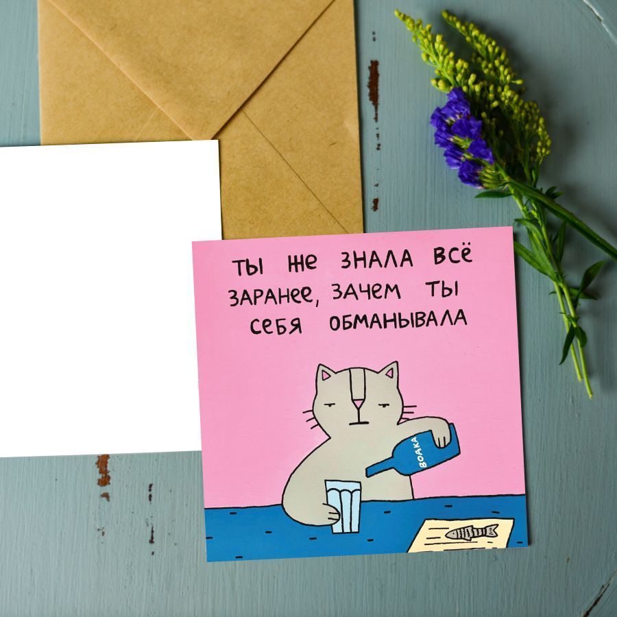 Открытка Лены Генч «Ты же знала всё заранее, зачем ты себя обманывала», квадратная