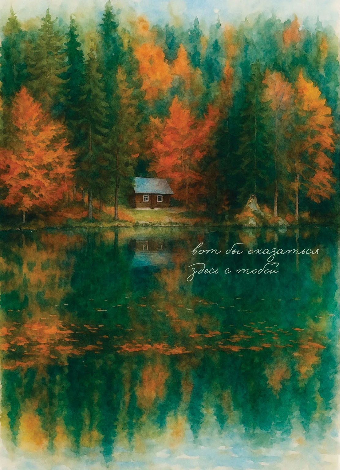 Авторская открытка с надписью  «Вот бы оказаться здесь с тобой»  - невероятно красивый пейзаж передает всю атмосферу осени!