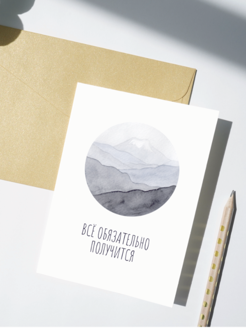 Авторская открытка с акварельным рисунком и надписью размера 90*130 мм (немного меньше стандартной). Минималистичный принт открытки и свободное место для подписи на обратной стороне делают её идеальным дополнением к любому подарку. Также для вашего удобства открытка упакована в индивидуальный крафтовый конверт. Печать выполнена на матовом картоне плотностью 300 г/м. Открытка односторонняя, не открывается.