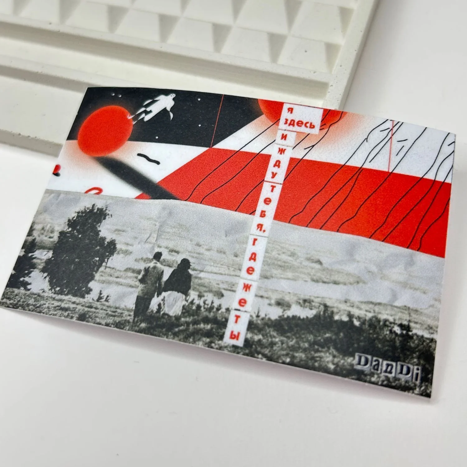 Открытка «Я здесь и жду тебя. Где же ты» формата А6. Выполнена из материала soft touch.
