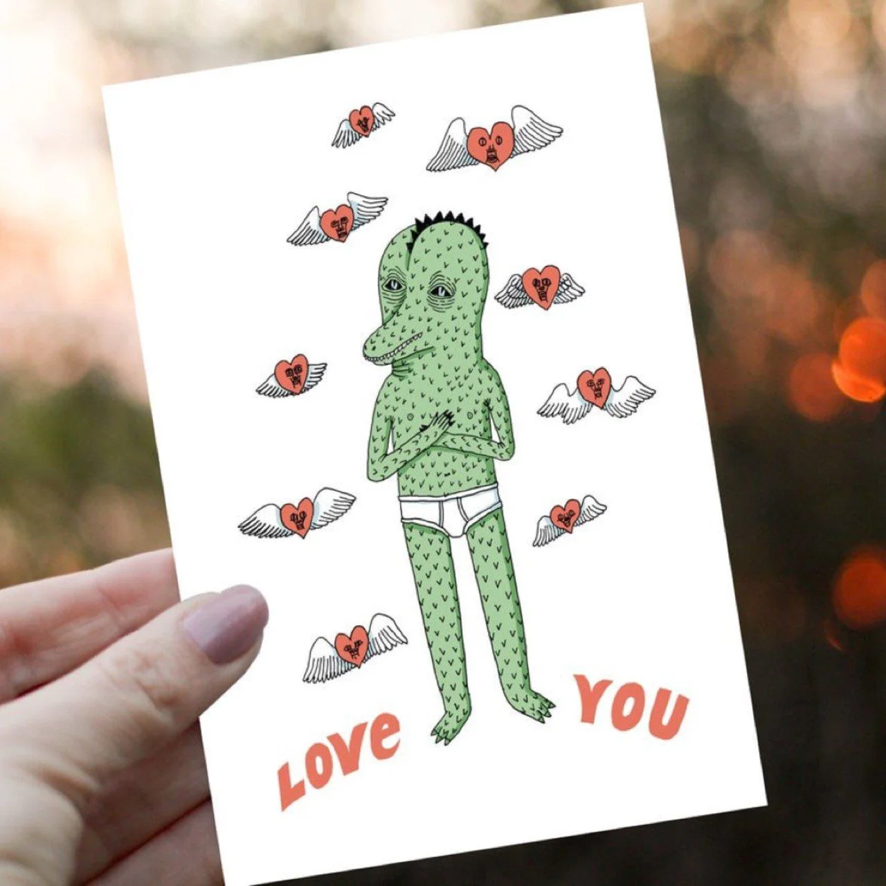 Открытка «Ящер Love you», художница из Санкт-Петербурга Валя Карнавалова.