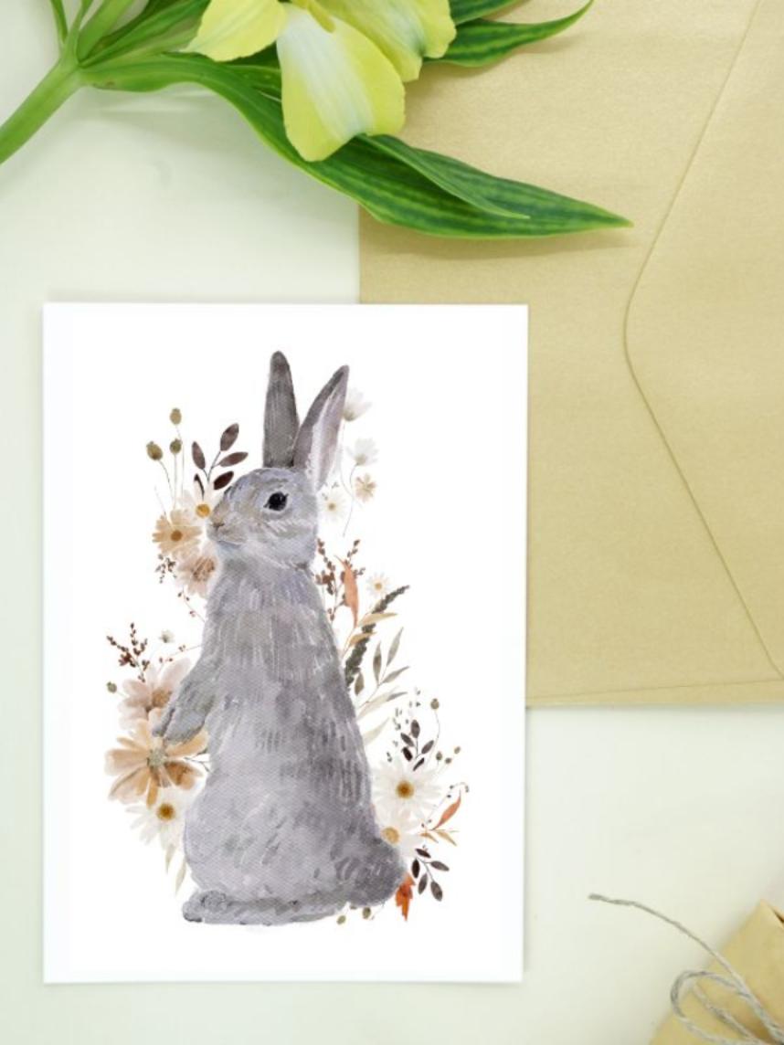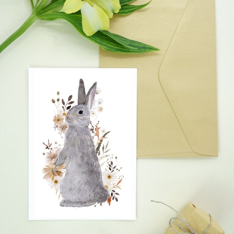 Авторская открытка уменьшенного формата. Иллюстрация с зайчиком и свободное место для подписи на обратной стороне делают открытку идеальным дополнением к любому подарку.