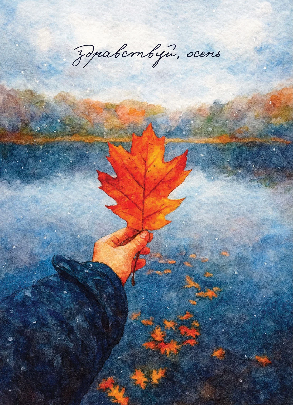 Авторская открытка с надписью «Здравствуй,осень»  - невероятно красивый пейзаж передает всю атмосферу этого времени года!