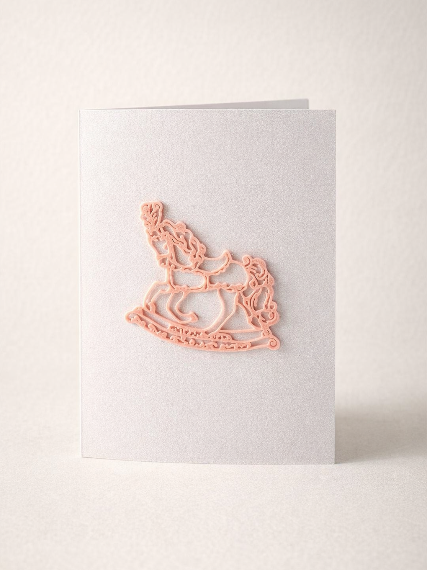 Открывающаяся открытка DARI DARI «Лошадка-качалка» с фигурным элементом, розовая