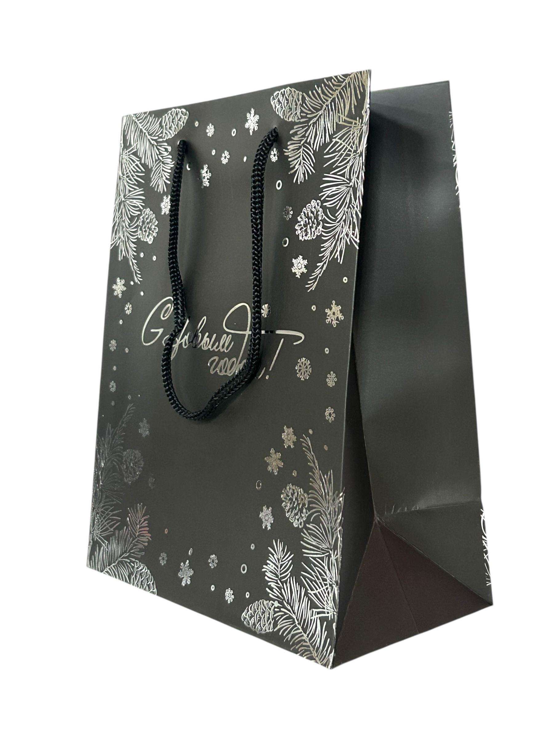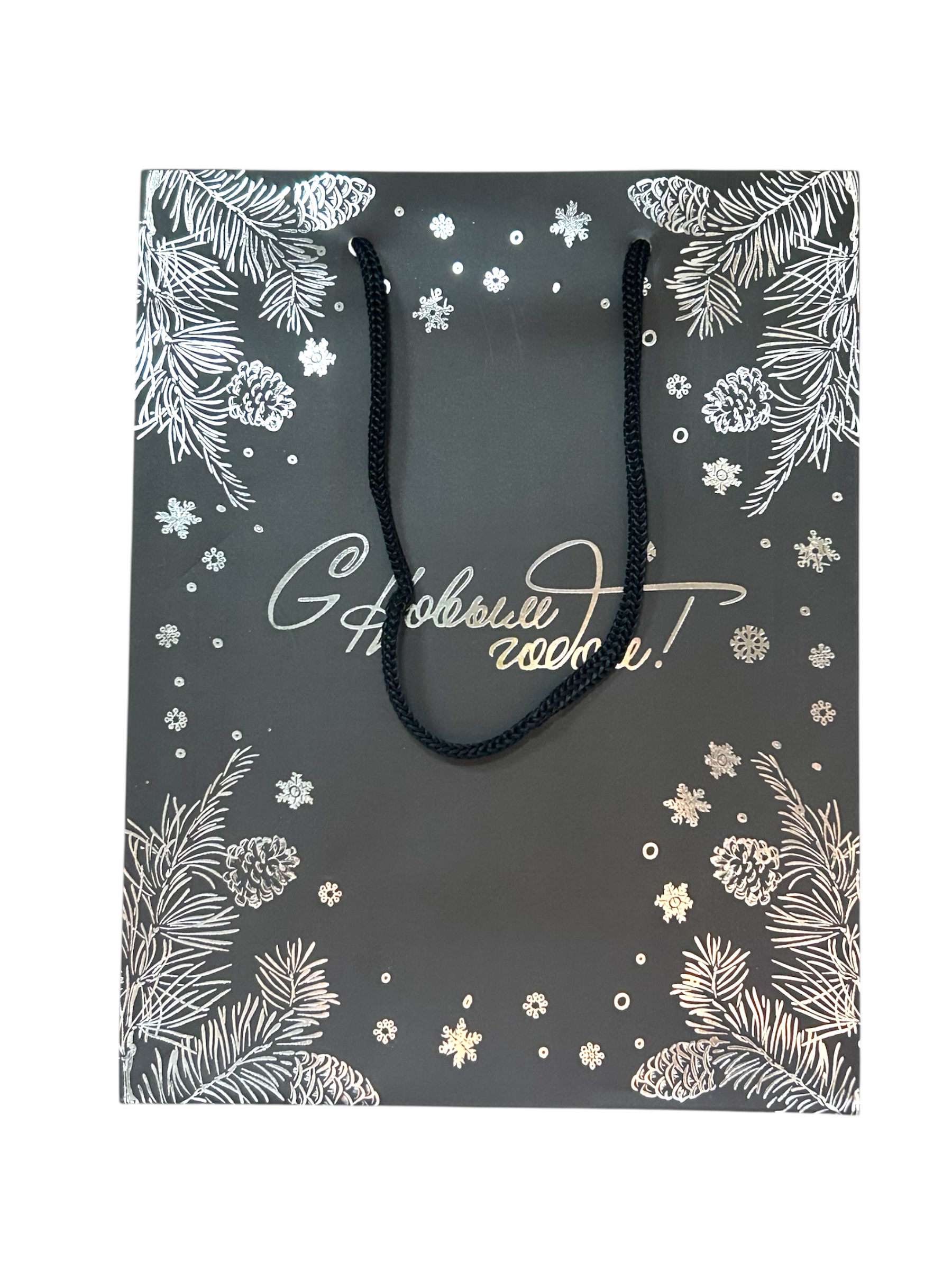 Пакет подарочный блестящий «С Новым годом!». Размер: 18х10х23см.