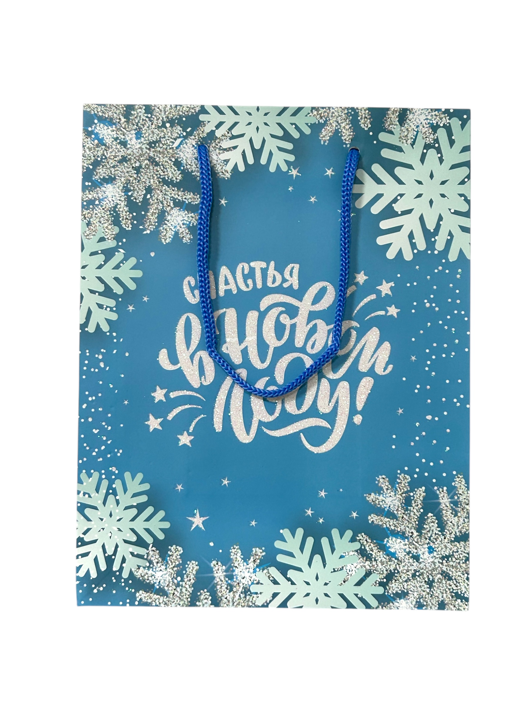 Пакет подарочный блестящий «Счастья в Новом году!»