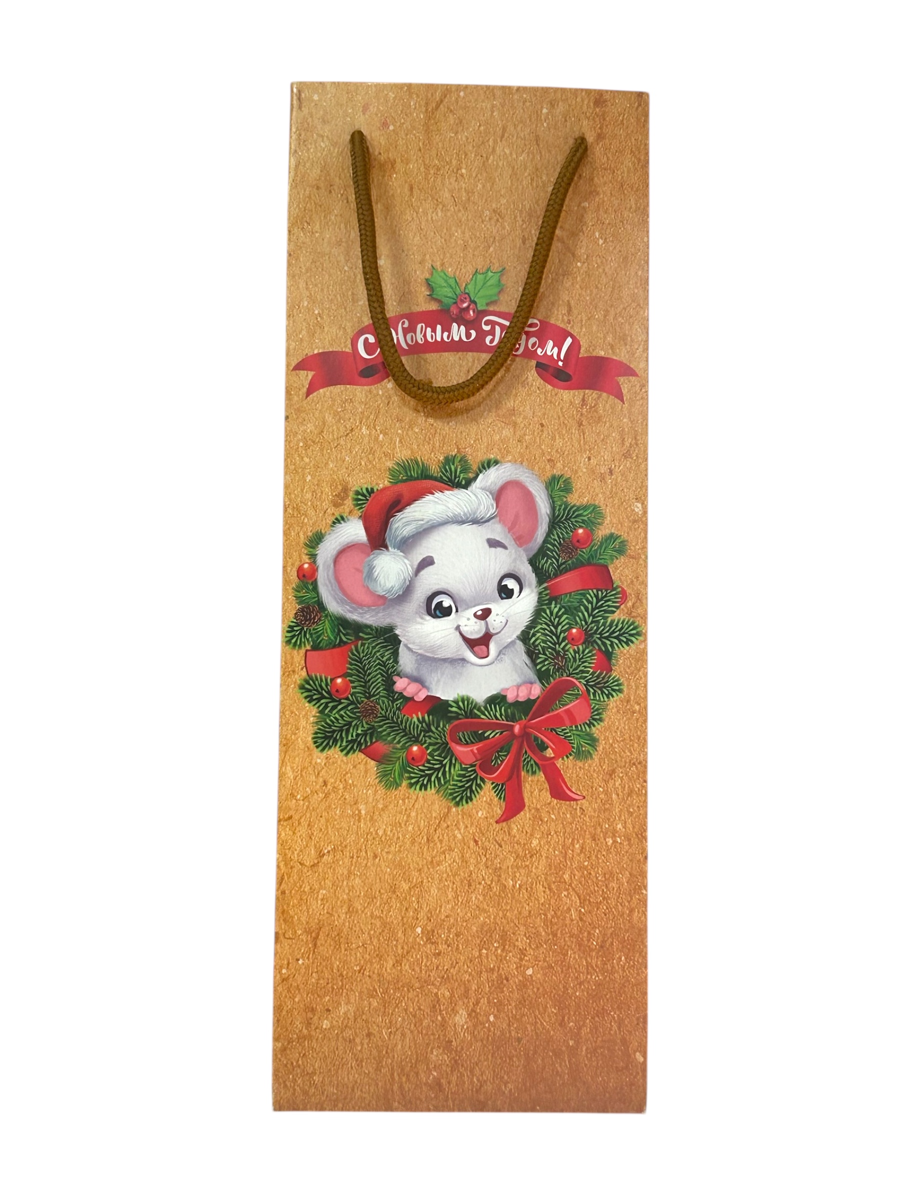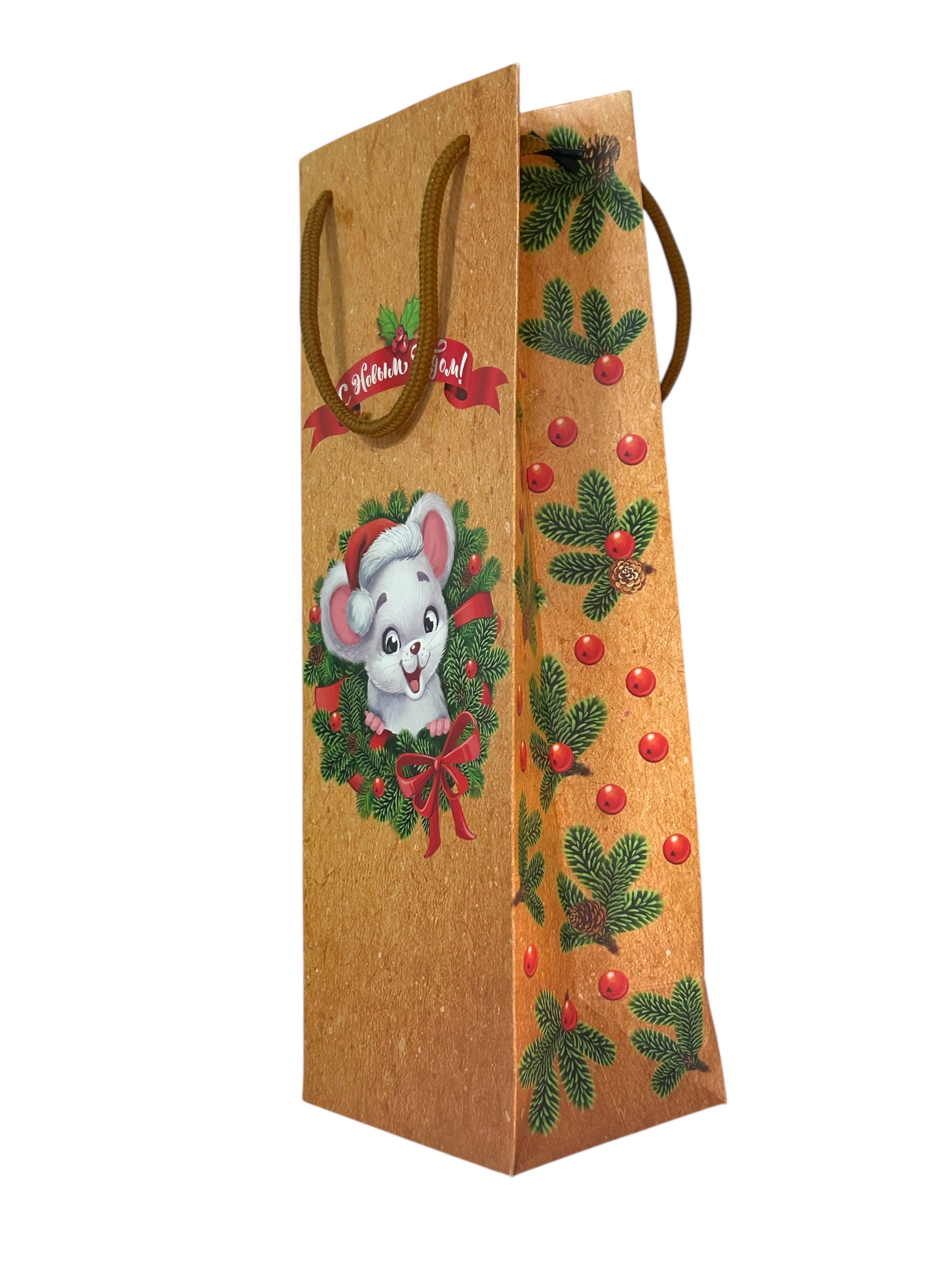Пакет подарочный под бутылку «С Новым годом!». Размер: 13х10х36см.