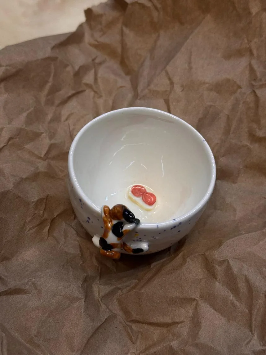 Пиала ручной работы Маковка «Котик ворует бутерброд», белая, 100 мл