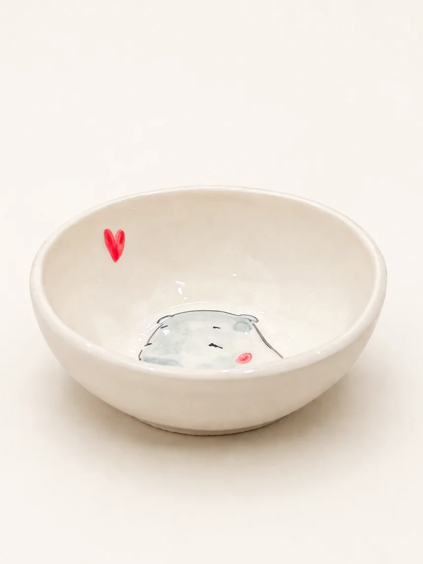Эта милая белая керамическая пиала диаметром 10 см выполнена вручную.