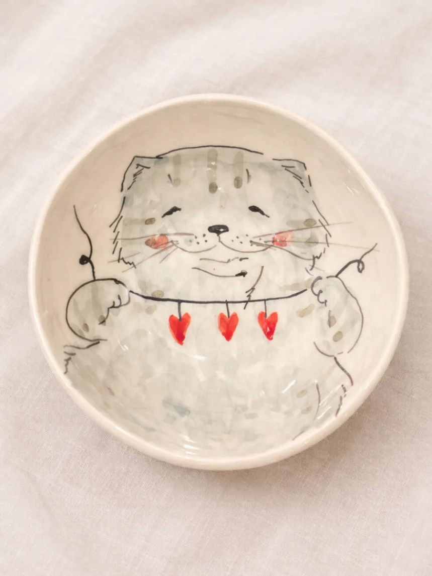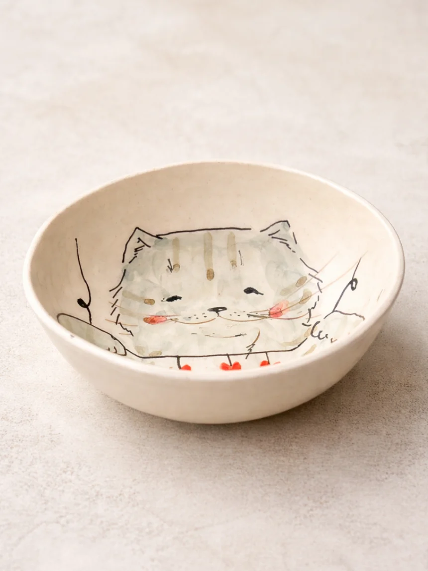 Очаровательная пиала, украшенная милой росписью «Кот с гирляндой».
