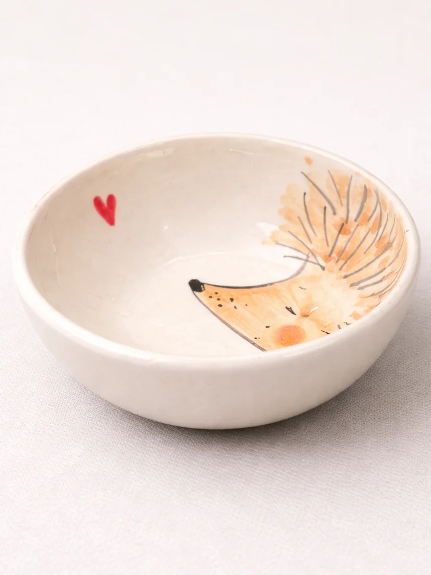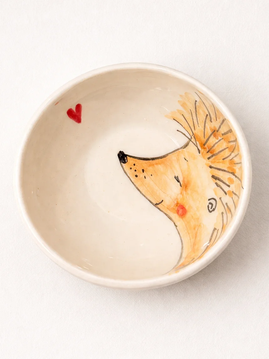 Украшена милой росписью с изображением ёжика, что делает ее идеальной для уютных чаепитий, десертов или как декоративный элемент.