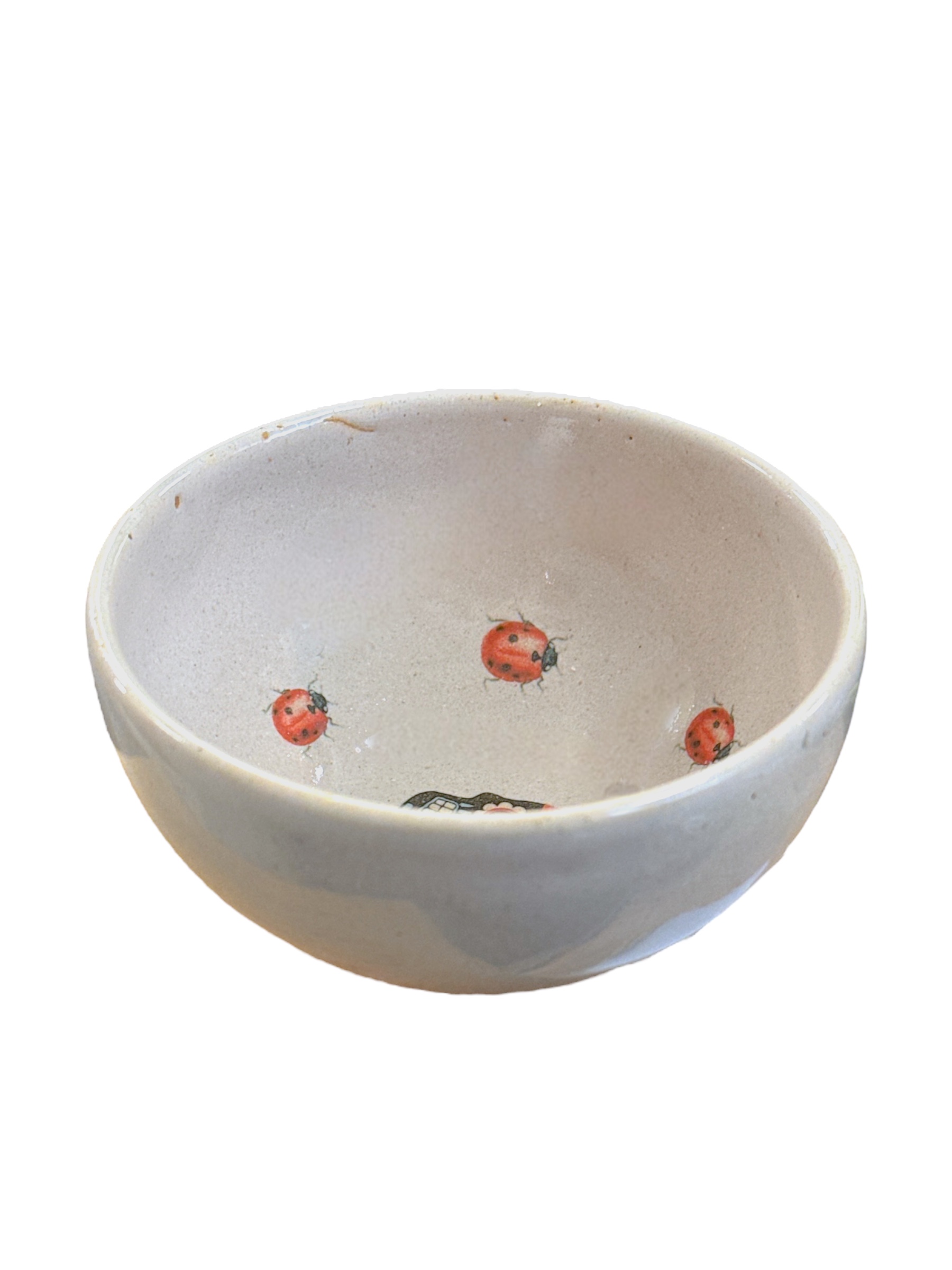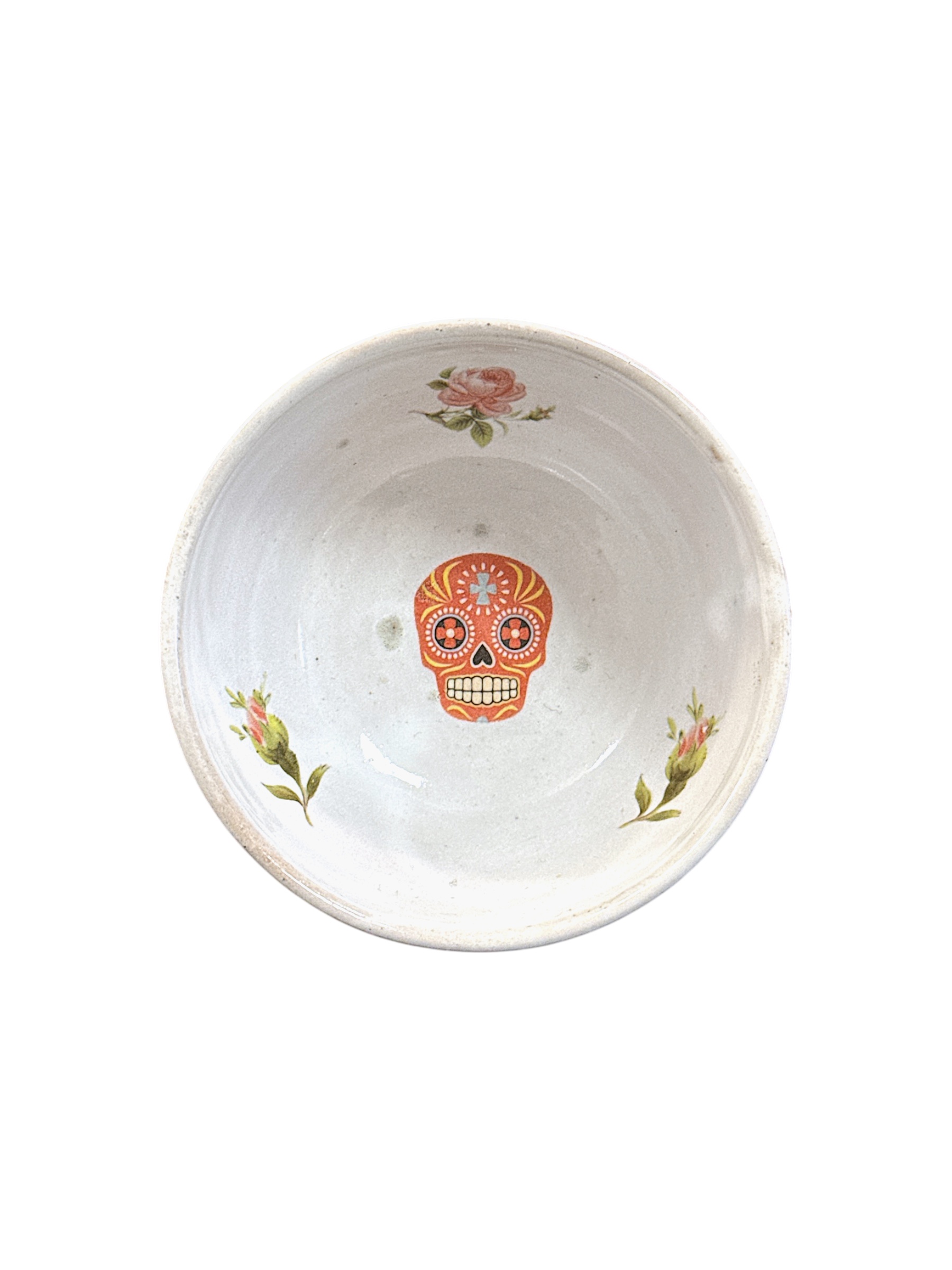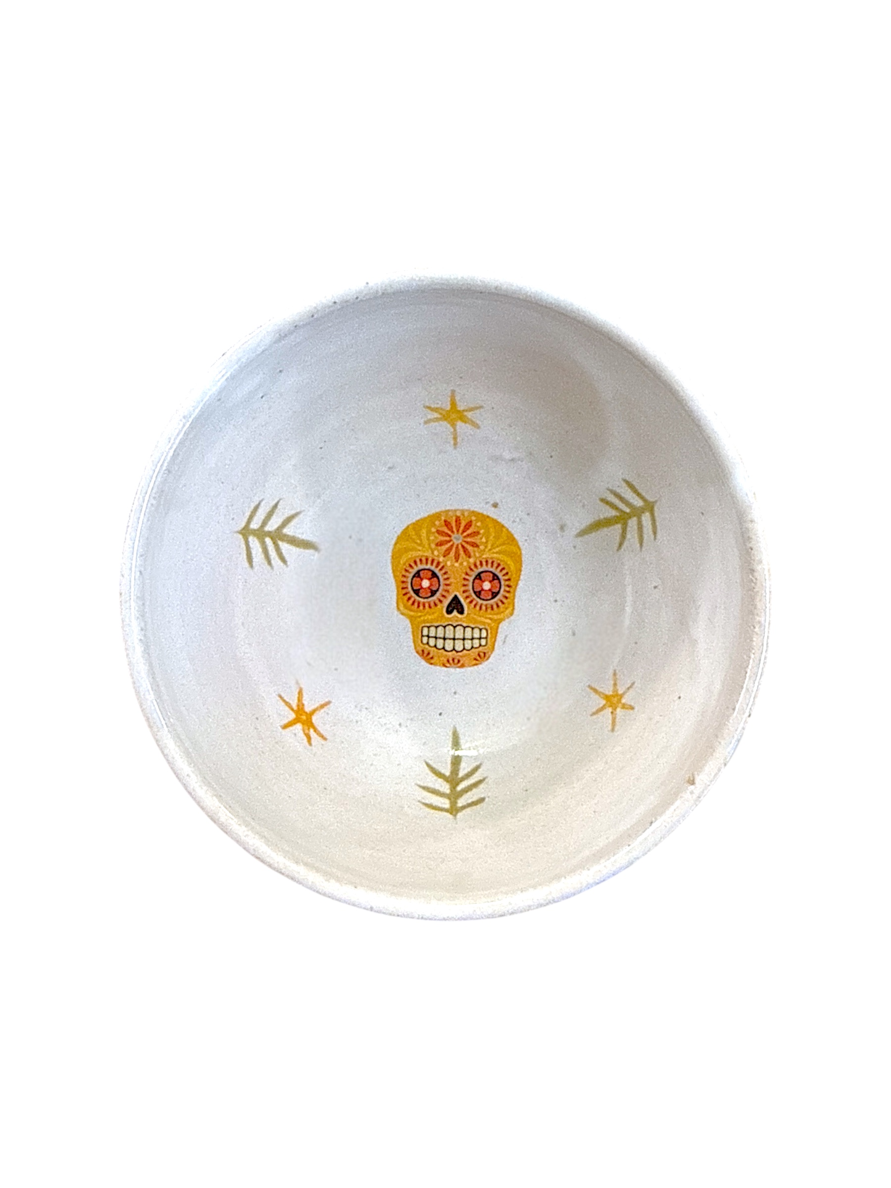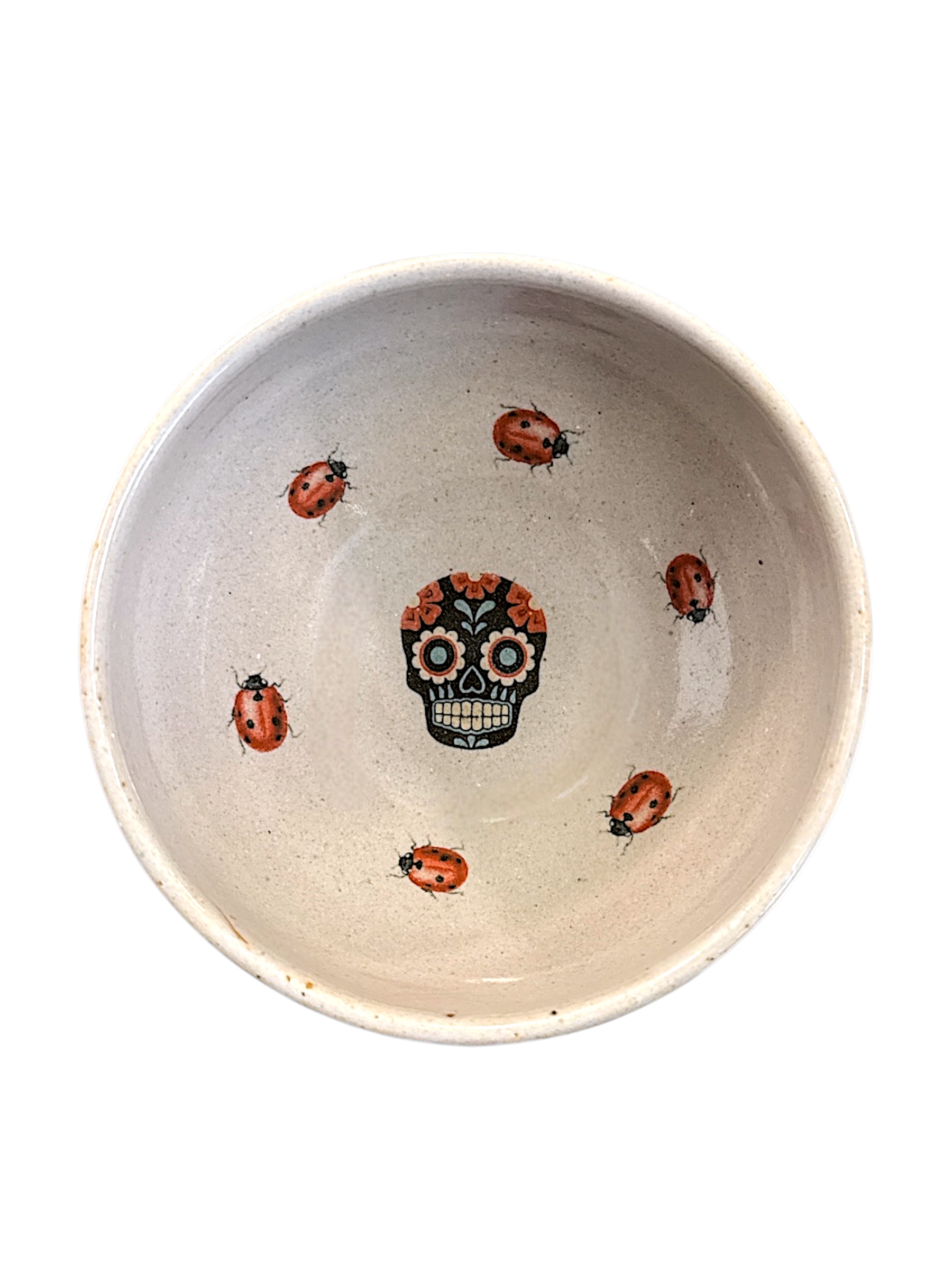 Пиала ручной работы с черепами, светло-бежевая, 9 см