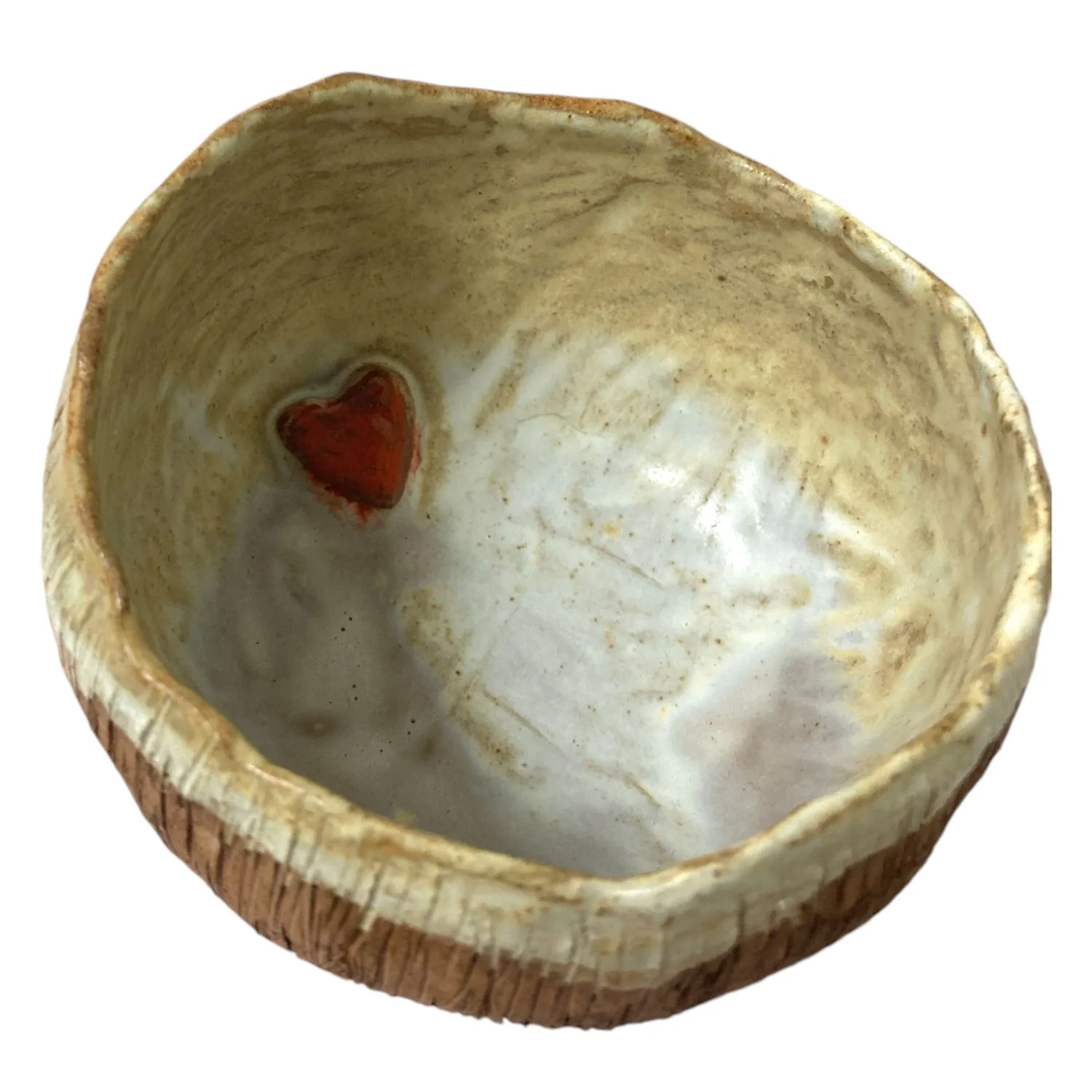 Пиала ручной работы Катя Вебер с разводами Кокос с красным сердечком внутри, керамика, 150 мл