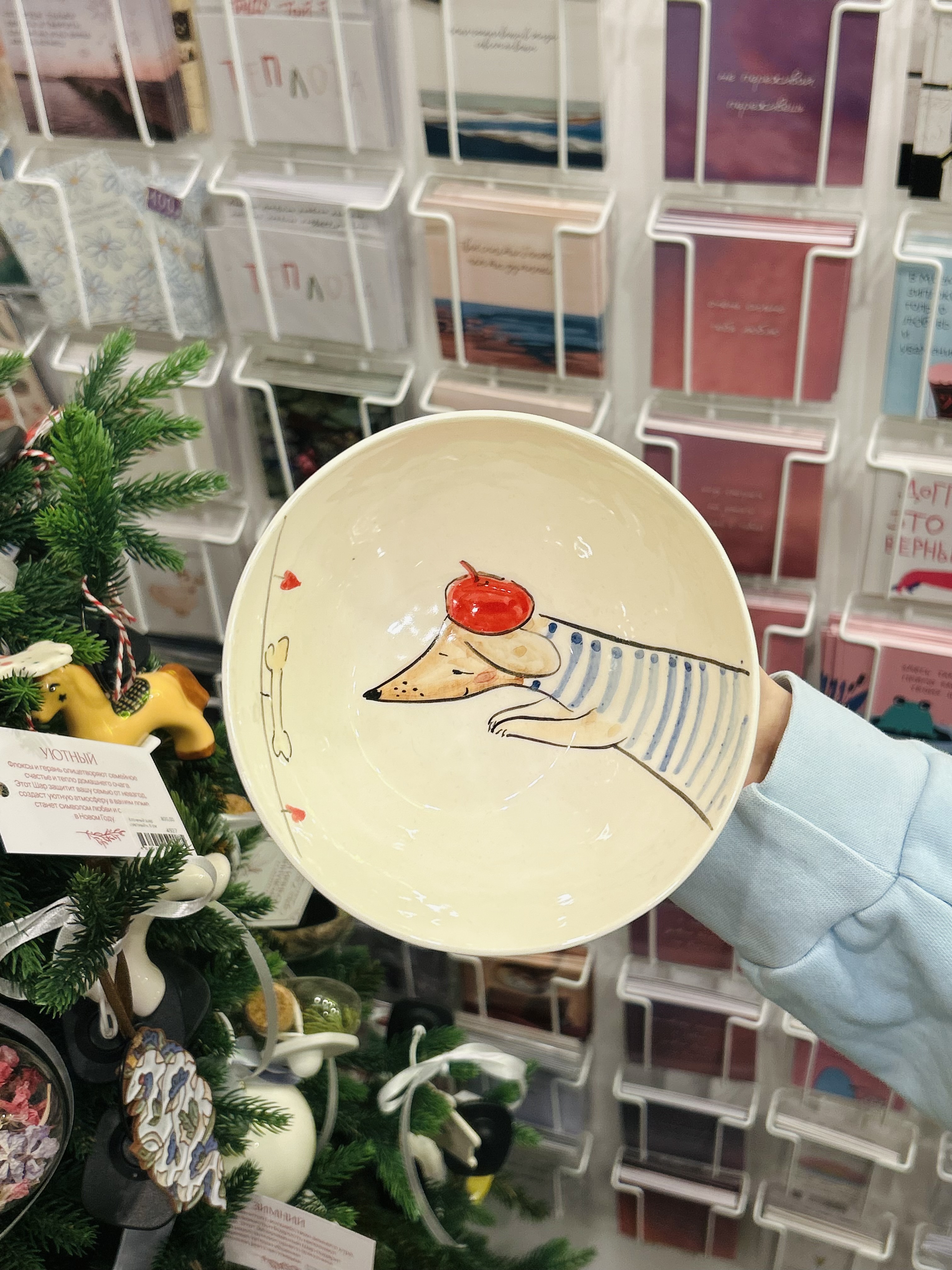 Пиала ручной работы с росписью «Такса», белая, керамика, 14 см