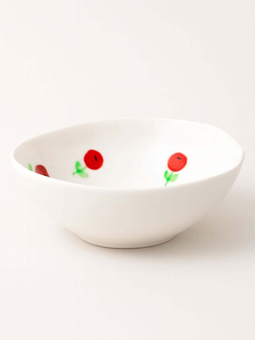 Пиала ручной работы с росписью внутри Лисёнок с красными цветами, белая, фарфор, 10 см